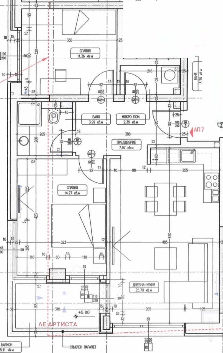 Обща квадратура: 107.75 кв. м (85.41 кв. м - чисто)