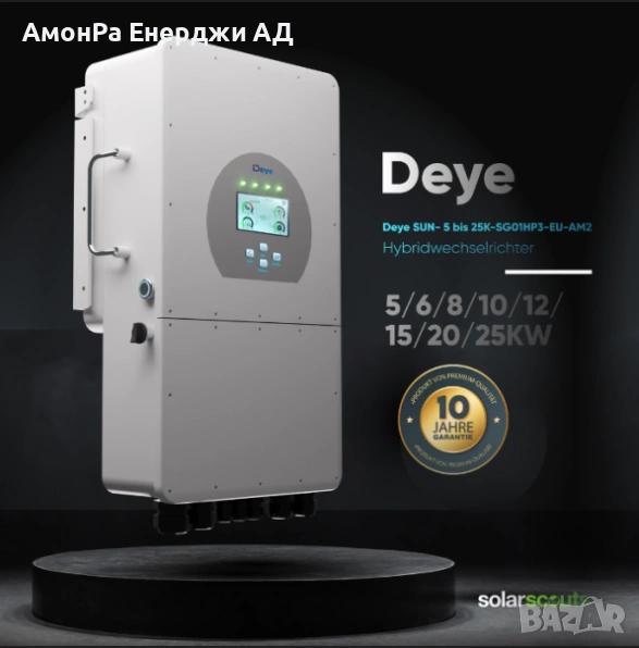 Хибридният трифазен инвертор Deye SUN-15K-SG01HP3-EU-AM2 е нов модел, специално разработен за соларни фотоволтаични системи. Той предлага висока ефективност и надеждност при преобразуването на постоянния ток, генериран от слънчевите панели, във взаимно съвместимия със системата трифазен променлив ток, който се използва във вашата сграда или дом.
