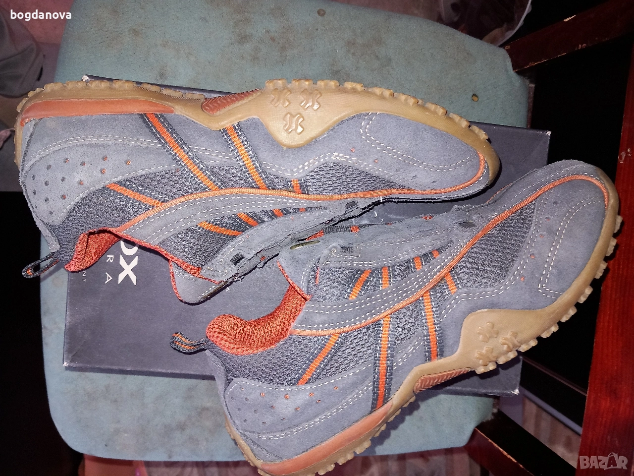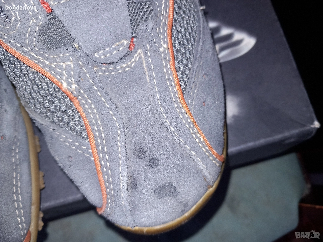 Изработени са от естествена кожа и велур, стелка също от кожа, дишащи оригинални. Имат леки капчици на лявата обувка отпред (така са купени, сигурно може да се почистят). Обувани са 1-2 пъти, без забележки като нови. Много здрави обувки. Доставка с куриер с преглед и тест или лично предаване.