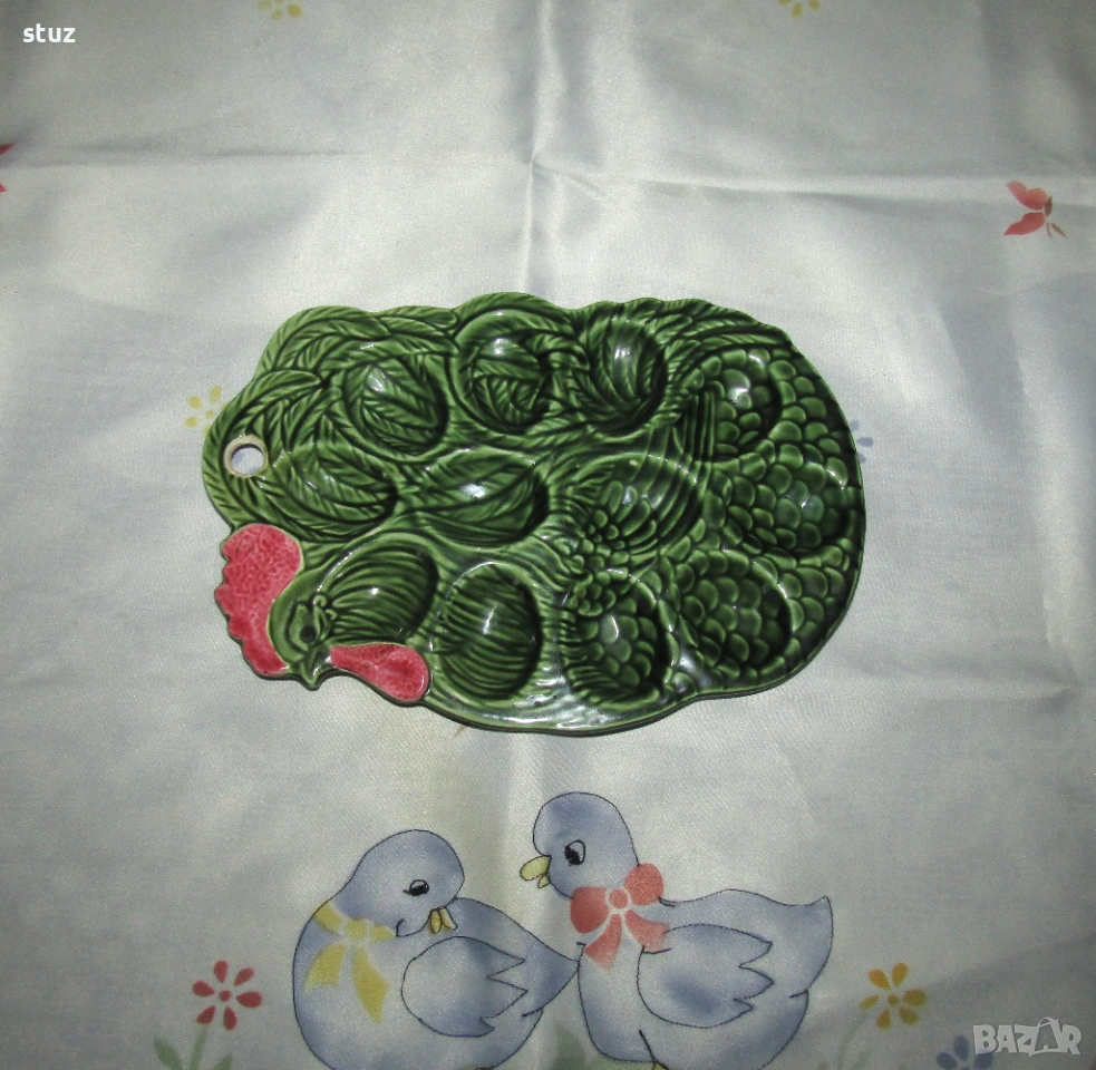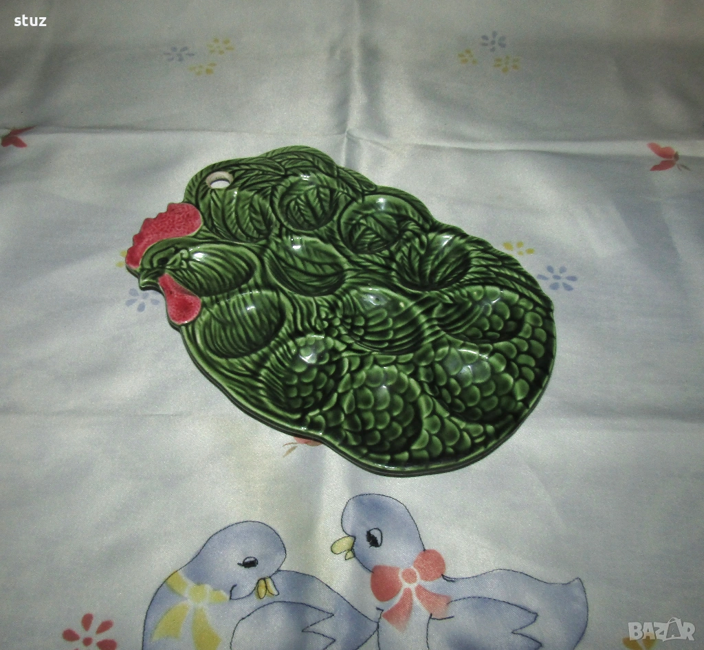 Порцеланово великденско плато с петле, за 12 яйца → Обява 53986831