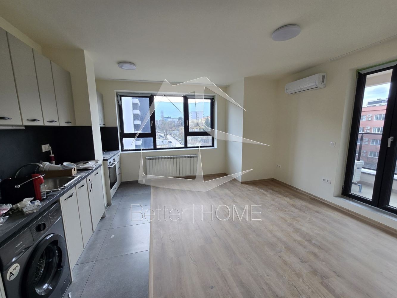 🛋️ Дневна с кухненски бокс модерно организирано пространство с обособена зона за отдих и хранене