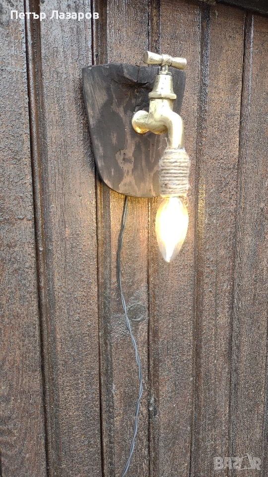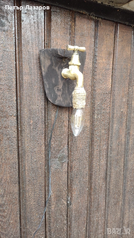 Стар водопроводен кран преработен на лед лампа.Подходящ за битов кът и още.......