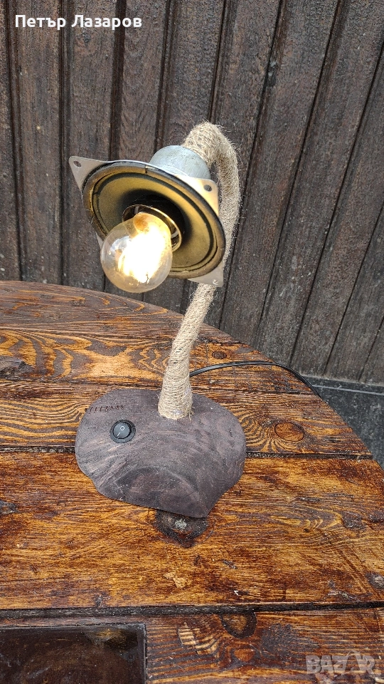 Стар високоговорител преработен на лед настолна лампа.