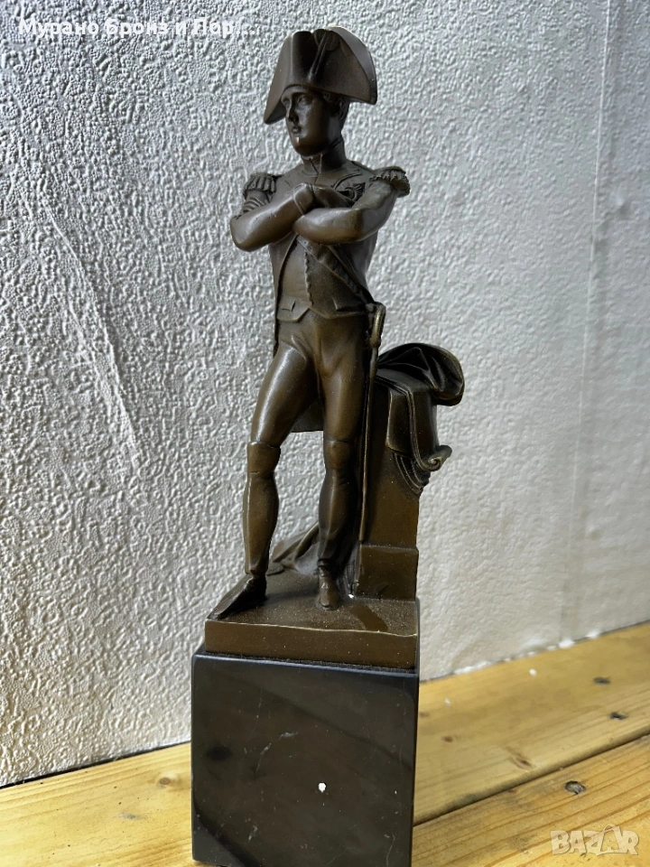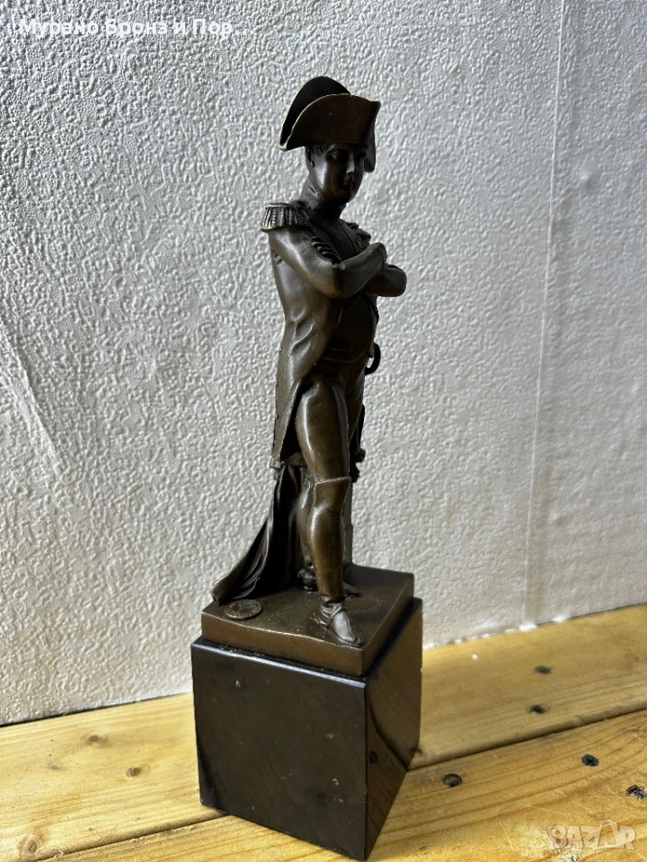 Продавам изключително детайлна антикварна статуетка от истински, масивен бронз, изобразяваща Наполеон Бонапарт. Това е висококачествено произведение на изкуството от края на XIX или началото на XX век, идеално за сериозни колекционери и декорация на сувенирния сектор.