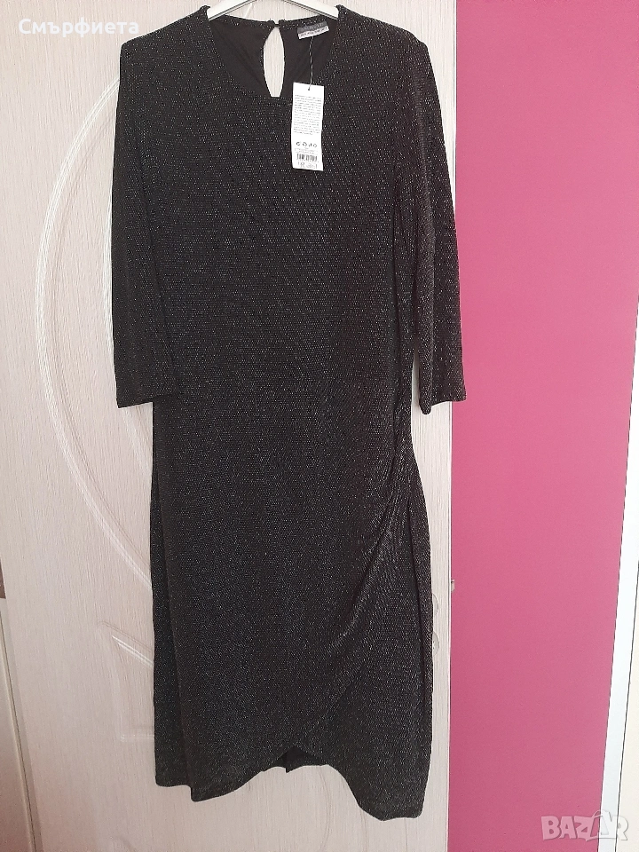 Нова дамска рокля размер 44-46,с блестящ ефект. Много елегантен модел подходящ за всякакви поводи. Пада тежко и има подплата