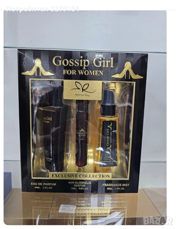 Подаръчен сет Gossip Girl For Women Exclusive Collection Eau De Parfum 50ml / В комплекта ще получите: Тоалетна вода - Eau de Toilette 50ml , Парфюм - Non Alcoholic Parfum 15ml, Спрей за тяло - France mist 50ml