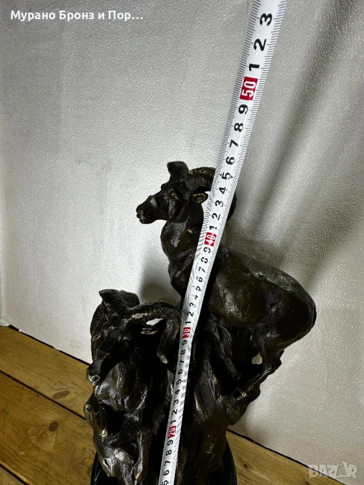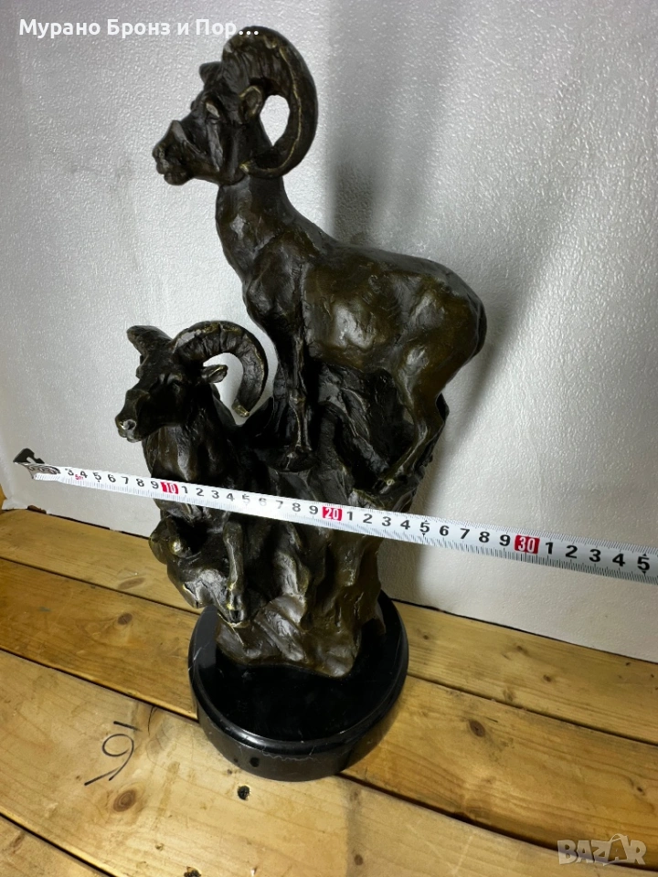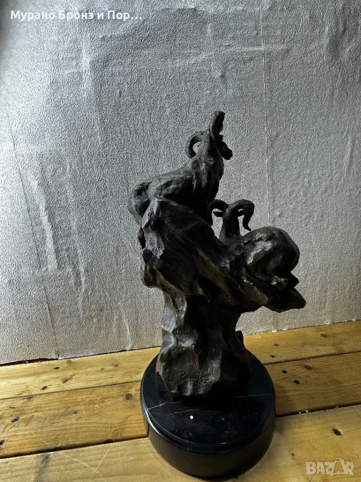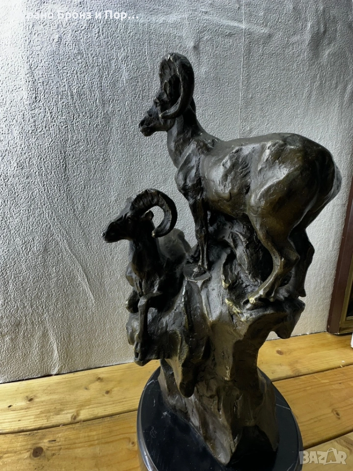 Продавам внушителна антикварна скулптура от истински, масивен бронз, изобразяваща два диви овена върху скалист терен. Предметът е изключително тежък и представителен, подходящ за централен акцент в интериора или за луксозен подарък.
