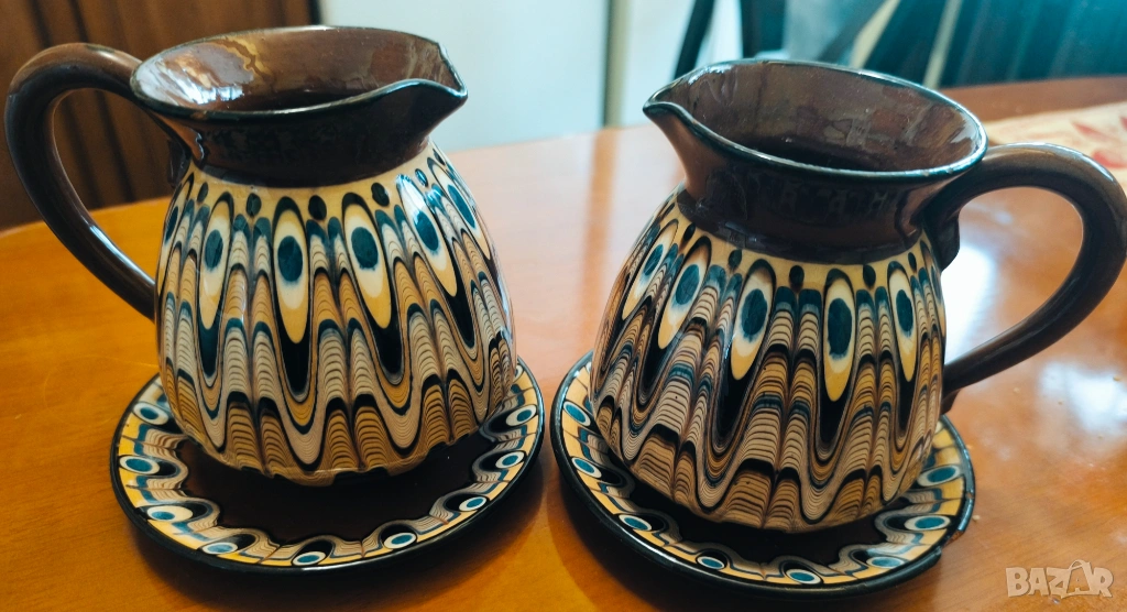 Две кани с чинийки, троянска керамика, 11/10 см., обща цена 6€.