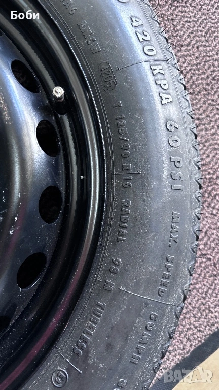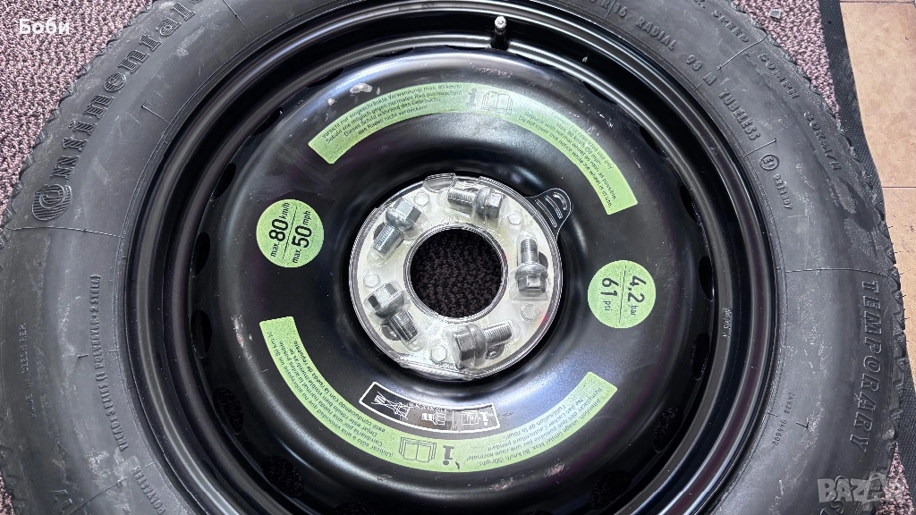 Неизползвана резервна гума с джанта за Мерцедес ,подходяща за А,B ,C ,E класа към нея и болтовете за закрепване