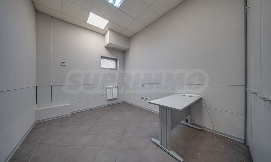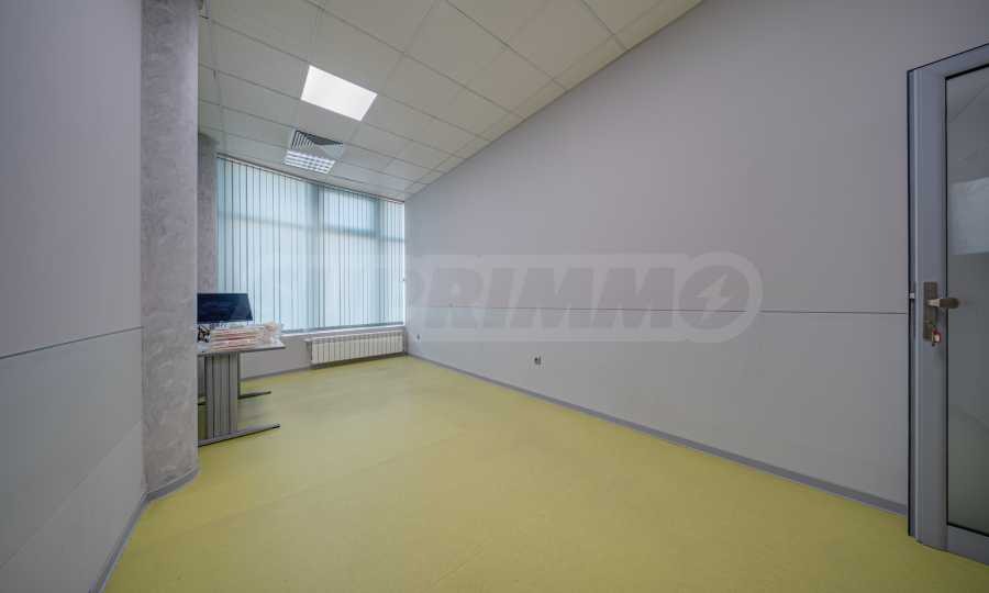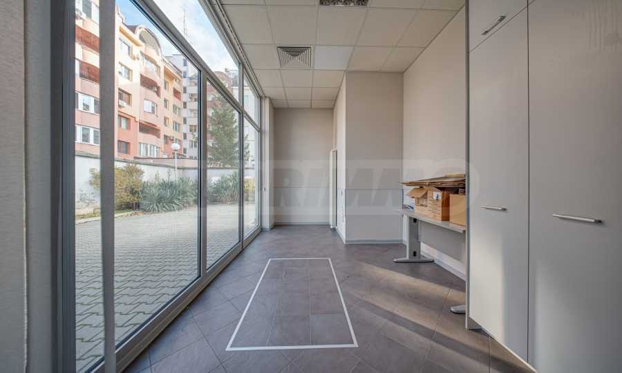 Имотът е позициониран на цял етаж в малка бизнес сграда. Към имота има голям озеленен двор, който може да се ползва от служителите.
