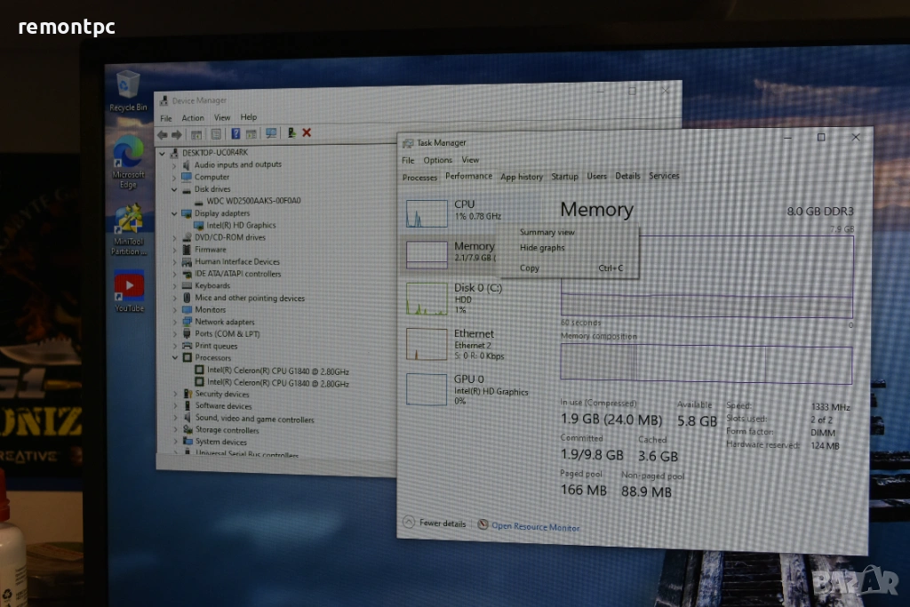 Acer Extensa M2610 8 GB DDR3 Марков настолен компютър