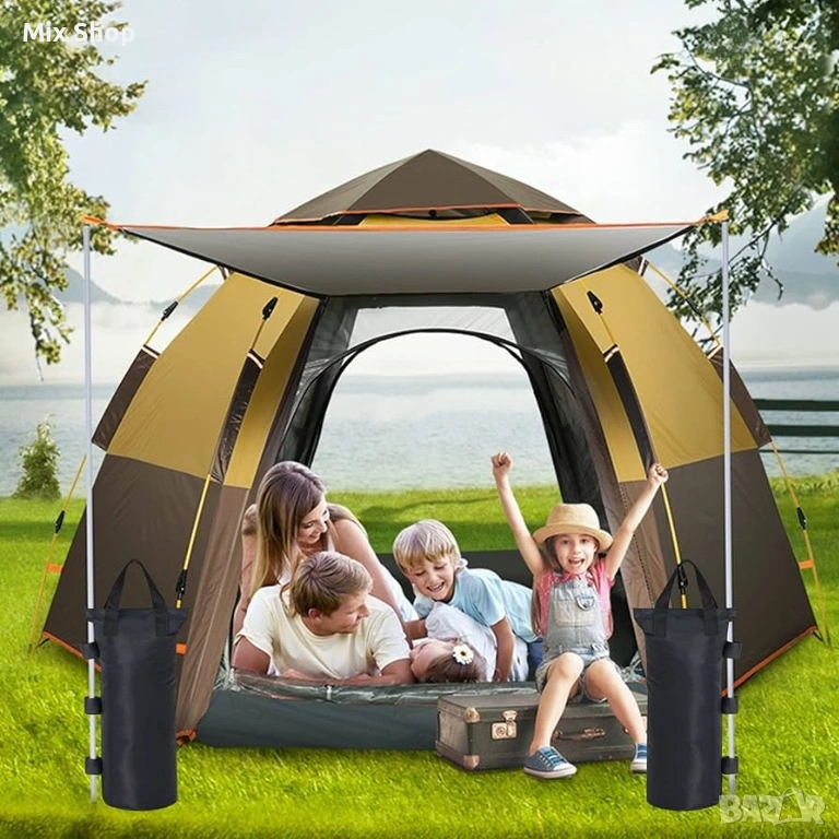 Лесна за работа - Изсипете пясък, камъни или друг пълнител в торбата с пясък, за да добавите тежест. След това завържете 4-те велкро ленти към краката на палатката и сте готови. Пясъкът може да се изсипе директно след употреба и може да се сгъне и съхранява след почистване.