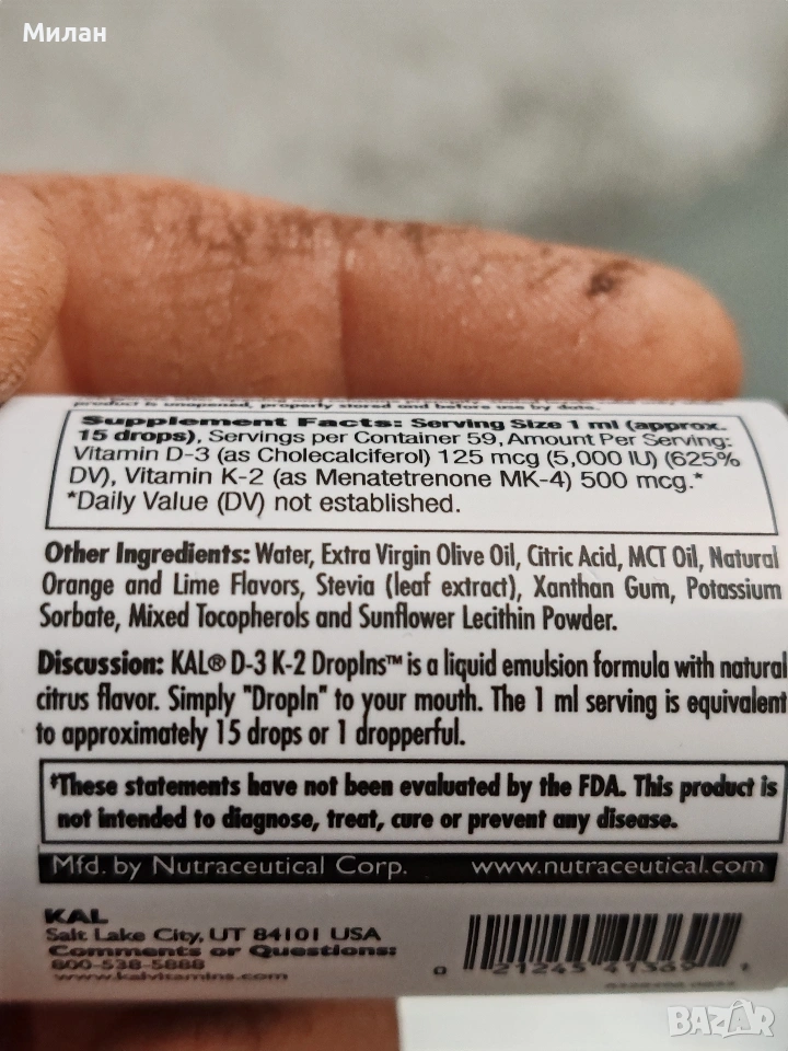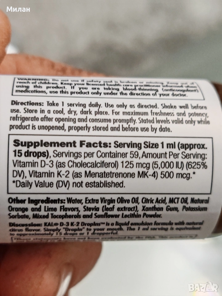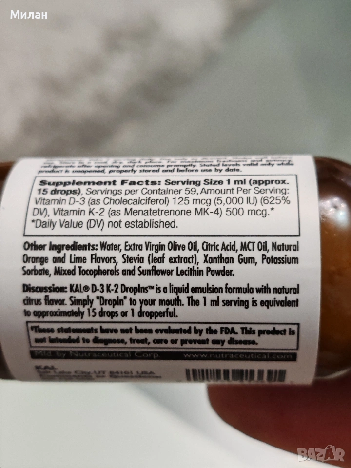 Витамини капки D-3 К-2,цитрус 59ml → Обява 53988241