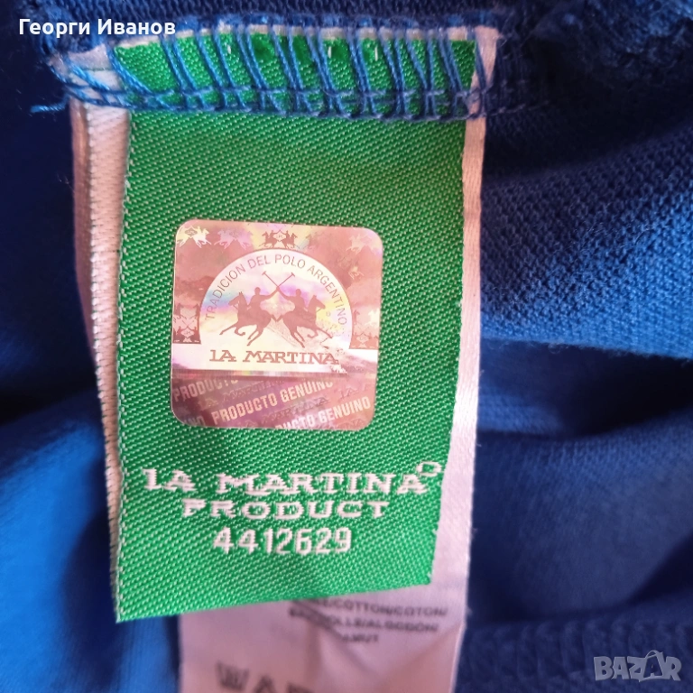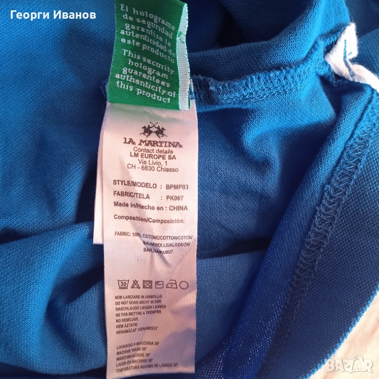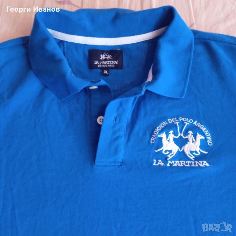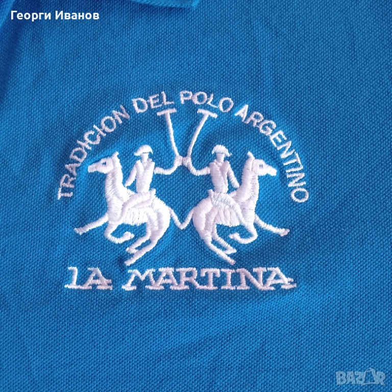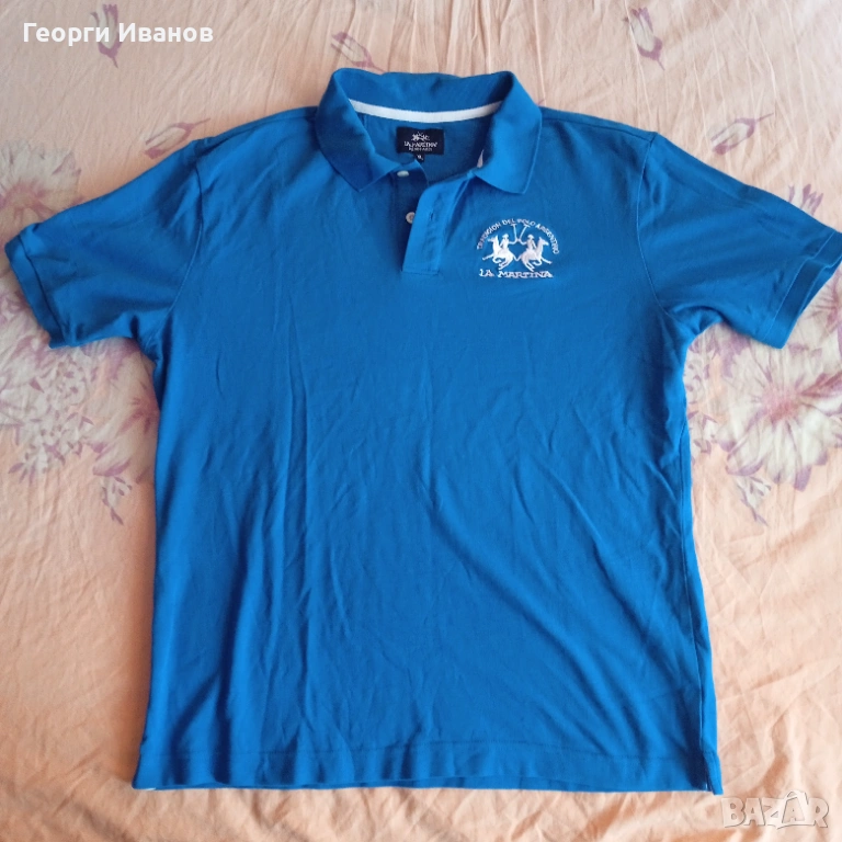 Продавам 100% оригинален кобалтовосин поло-шърт LA MARTINA с холограмен етикет, 100% памук. Блузката е носена едно лято, запазена в перфектно състояние без никакви забележки като петна,