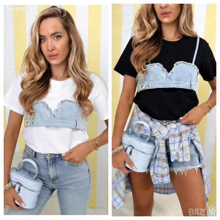 Тениска с акцент деним