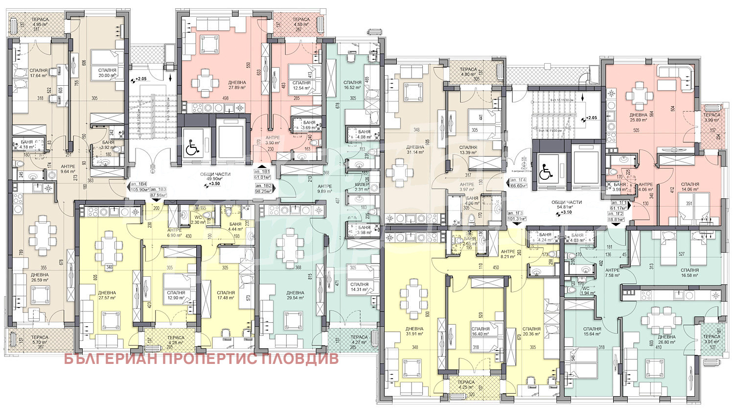 Модерният проект впечатлява с функционалност при разпределението на пространството, стилна и отличаваща се визия, както и с дизайн, позволяващ максимален достъп на естествена светлина в жилищата.