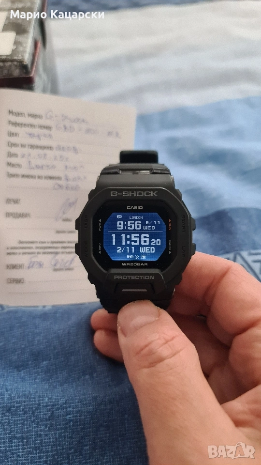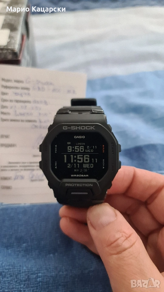 Здравейте, продавам въпросния модел на G-Shock GBD-200 слаган броени пъти поради наличие на доста други (част от които също се продават) Часовника е в състояние 10/10 с Гаранция Ето характеристики на модела,в YouTube има десетки ревюта на модела. Casio G-Shock G-Squad GBD-200-1A1 BluetoothG G-RESISTАларма многофункционалнаБатерия обикновеннаВодоустойчивост 20 barДата с ден от семицатаМинерално стъклоОсветление ЕлектролуминисцентноПолимернаСветовно времеХронометър с времена в паметтаХронометър с обратно броене Модел: GBD-200-1ER Каишка от полимерен материал Корпус от полимерен материал и неръждаема стомана Минерално стъкло Удароустойчивост Bluetooth 4.0 връзка - Часовника сам се сверява на съответната географска ширина, на която сте. А с едно натискане на бутона и чрез синхронизация с вашия телефон, от софтуера на смартфона ви може да избирате второ време, както и да сверявате пускaте и спирате алармата и др. Съвместим с повечето смарт телефони. Програма за свързване G-SHOCK Move Крачкомер Анализ на състоянието на тренировките, нивото на фитнес, натоварването на тренировките, както и времето за възстановяване. Създаване на потребителски профил Вибрация Световно време Автоматичен календар Хронометър Обратно броене 12/24-часов формат 4 независими дневни аларми LED осветяване на дисплея Водоустойчивост 20 бара - Позволява къпане, плуване и гмуркане (до 10 метра) Батерия CR2032 Размер 49.4mm x 45.9mm x 15mm Тегло 58g Пътува с еконт с преглед и тест. Разгледайте и другите ми обяви. Поздрави