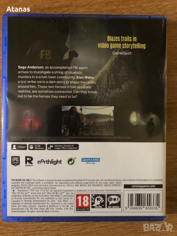 Продавам Alan Wake 2 - Deluxe Edition за PlayStation 5. Съдържа изключителни бонуси и допълнително съдържание. Играта е подходяща за почитателите на тайнствените и акционни игри.