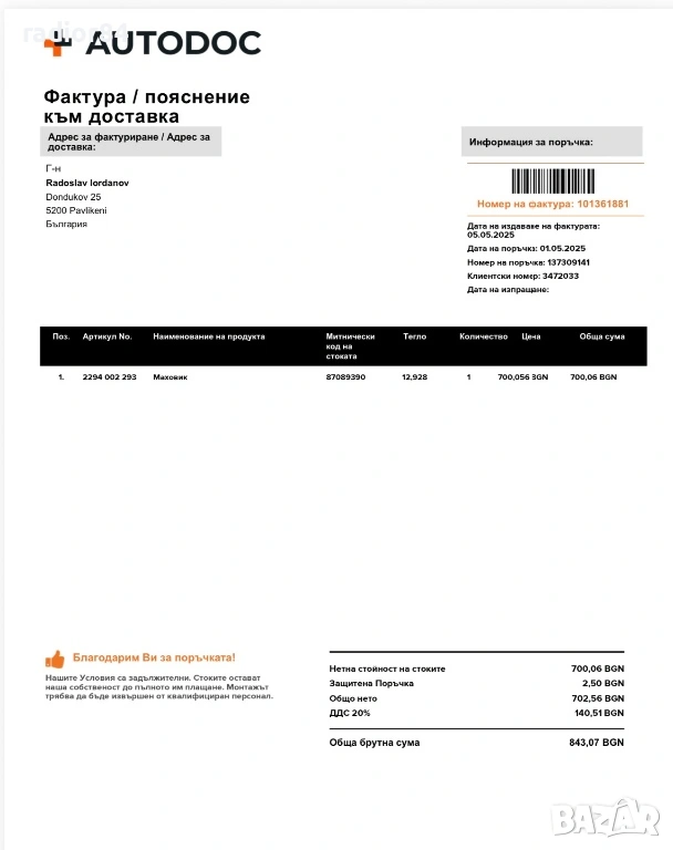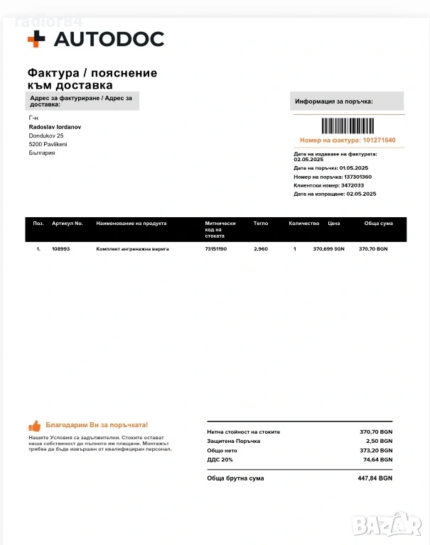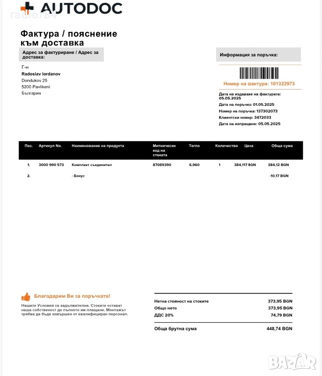 В Bazar.BG от 07 декември 2015г.