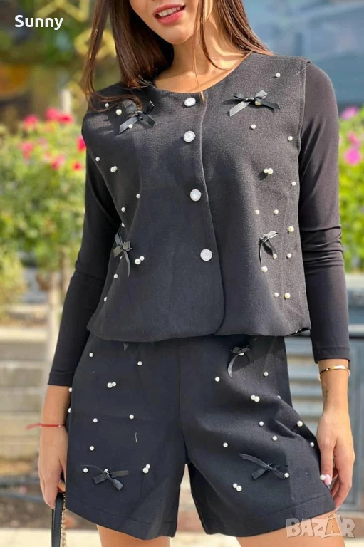 Елек и панталонки с перли и панделки
