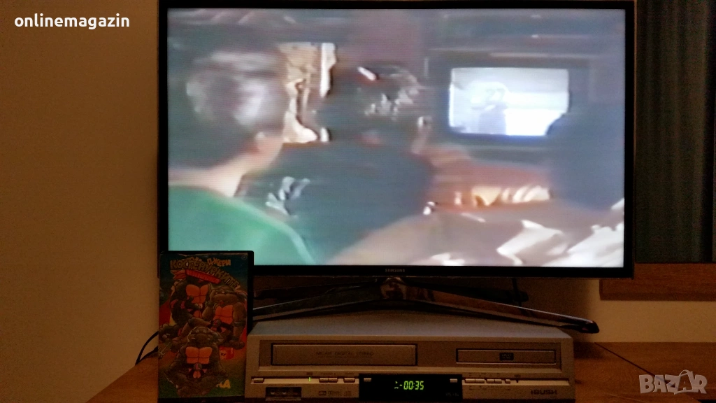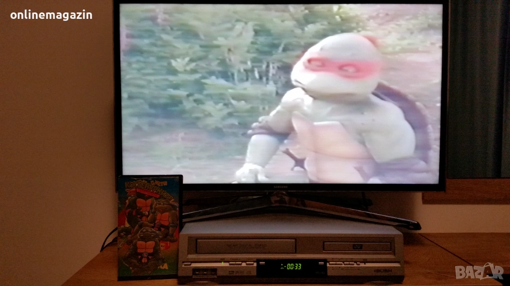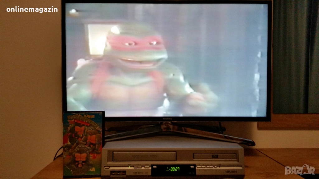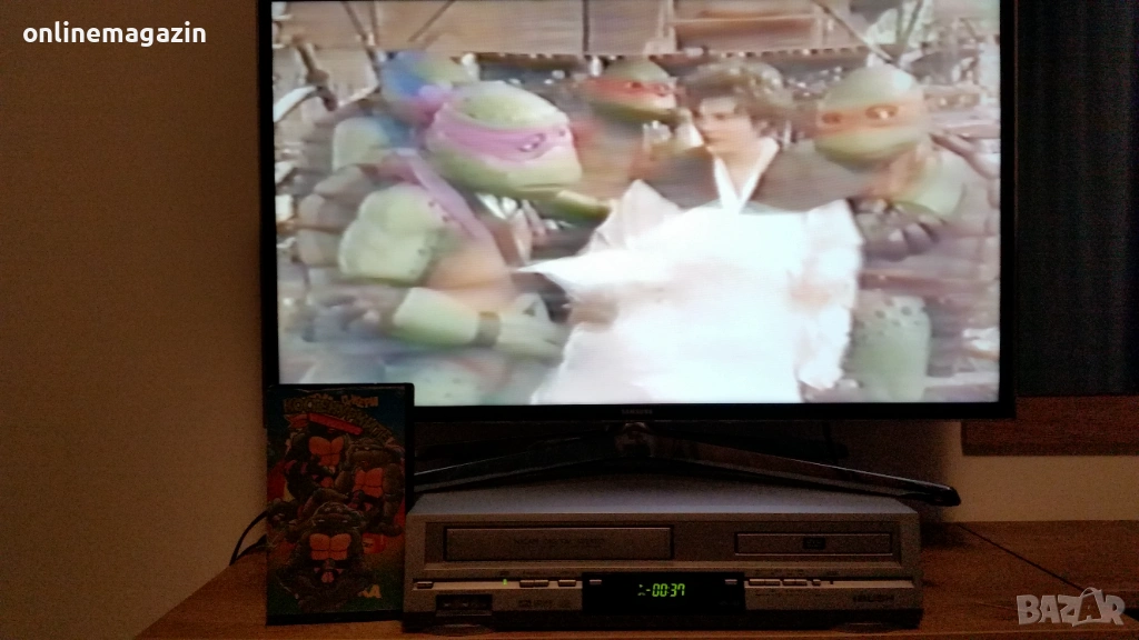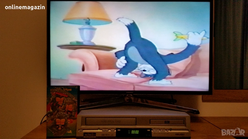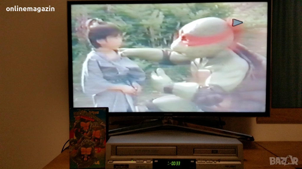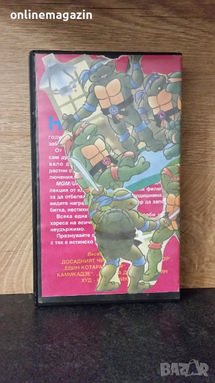 Продавам видеокасета с филма от 1993 година Костенурките Нинджа - Тинейджърски мутанти 3 ( игрален ) и няколко епизода на Том и Джери . И Костенурките Нинджа и Том и Джери са озвучени на български език. Касетата работи отлично . Изпращам с Еконт, Спиди или лично предаване. Цена 10 евро .