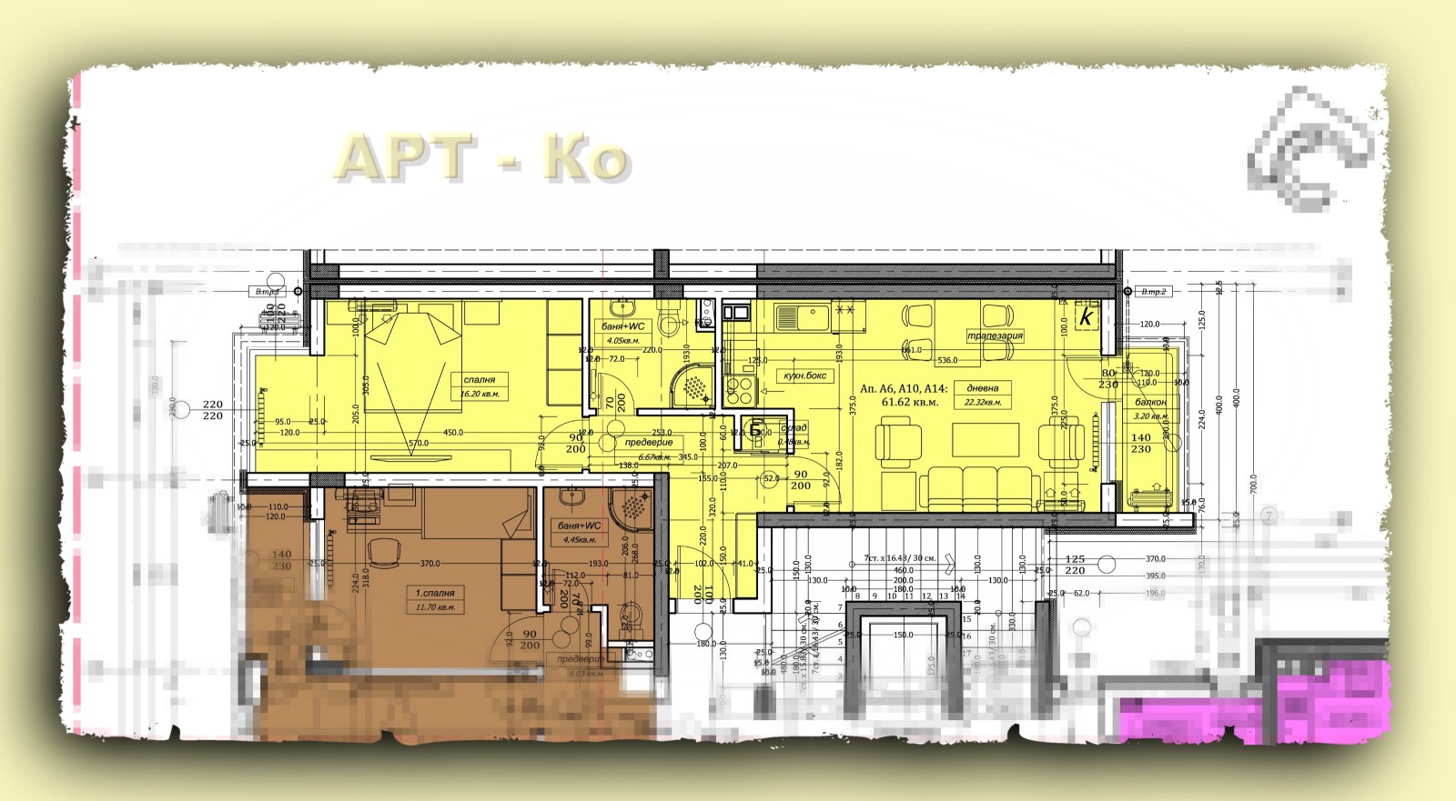 Разпределение: Модерен отворен план, включващ дневна с трапезария и кухненски бокс, уютна тераса с изглед към вътрешния двор, самостоятелна спалня и баня с тоалетна.