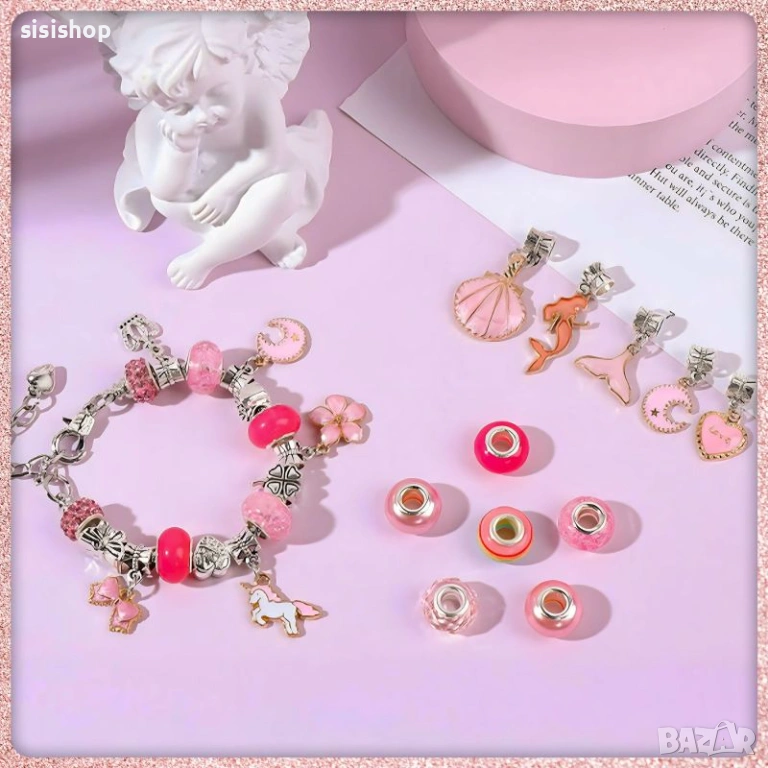 Креативен розов сет за правене на гривни и колиета Princess