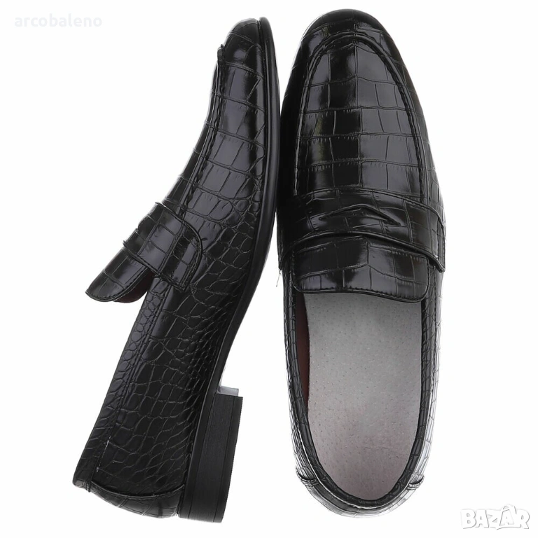 Впуснете се в свят на стилен комфорт с нашите ексклузивни мъжки обувки, които съчетават елегантност и функционалност. Изработени от висококачествен, издръжлив материал, тези обувки впечатляват с елегантния си дизайн, подчертан от фин релеф с крокодилска щампа. Обувките предлагат не само привлекателен външен вид, но и изключителен комфорт, благодарение на меката стелка, която поддържа краката ви дори при продължително носене. Идеални за ежедневно носене и свободно време, тези обувки гарантират изискан външен вид при различни поводи, независимо дали са на офис събития или на спокойни събирания с приятели. Неговата вечна форма и класическо черно покритие ги правят универсален спътник за всеки гардероб. Независимо дали сте в града или на село, тези мъжки обувки са перфектният партньор за мъжете, които следят модата. Добавете завършек към облеклото си с тези стилни обувки, които са не само практични, но и невероятно шикозни. Истински задължителни за колекцията обувки на всеки мъж!