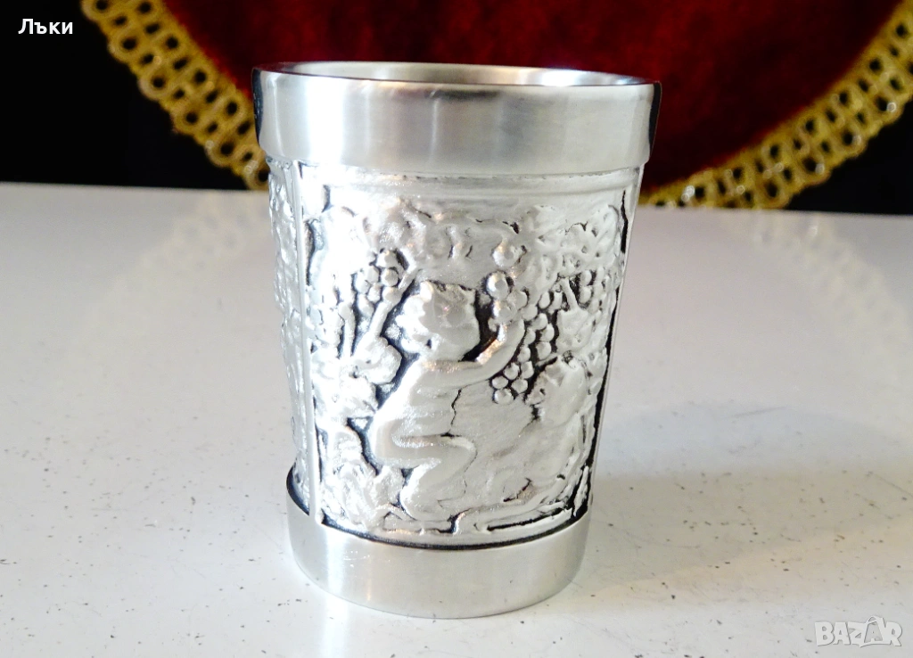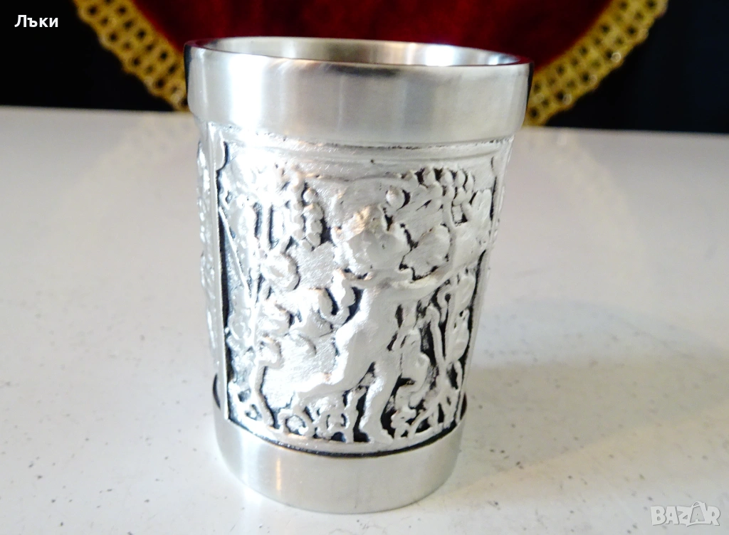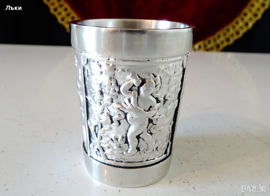 Стара немска калаена чаша,майсторска ръчна изработка от 95%