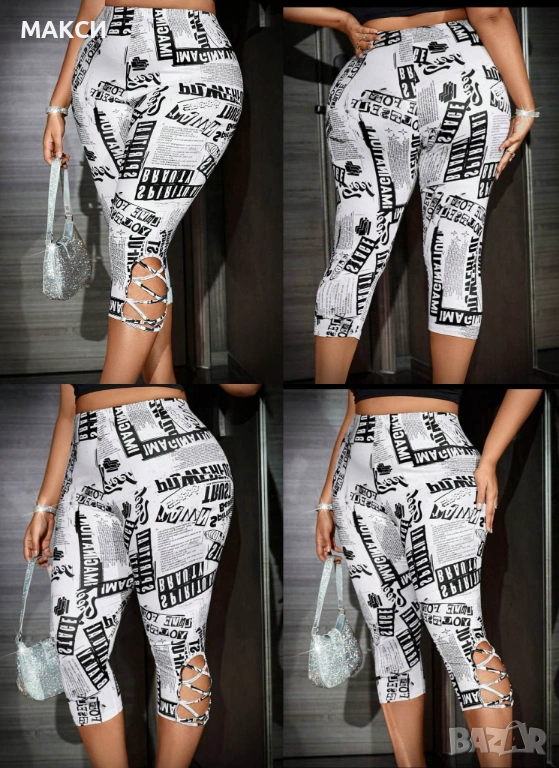 Макси атрактивни еластични бермуди с висока ластична талия и странични кръстоски с прорези в бяло с черни модерни надписи