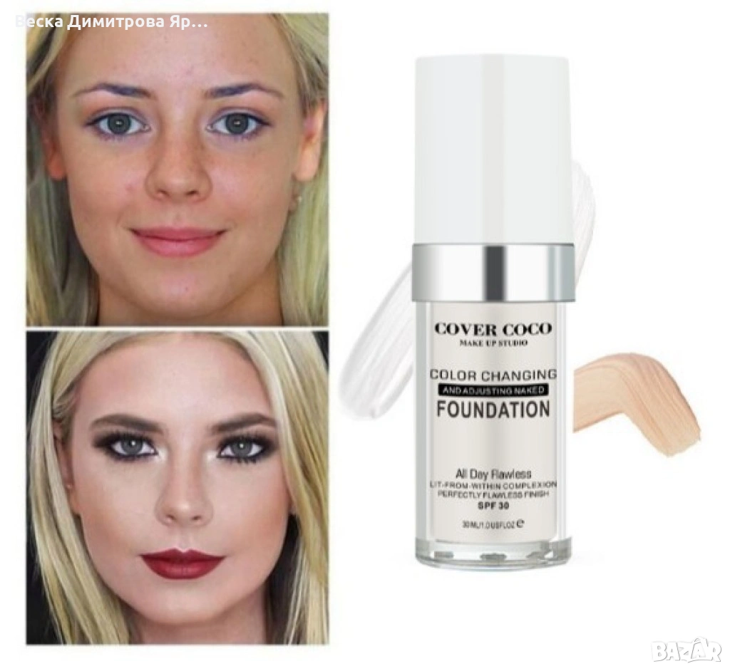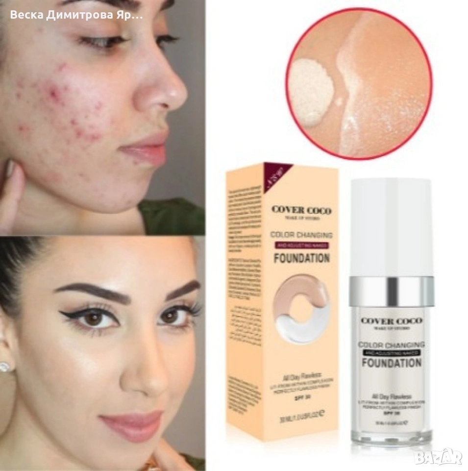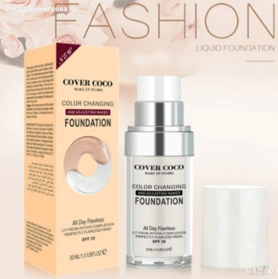 Променящ цвета си покривен течен фон дьо тен със SPF 30. 30 мл./