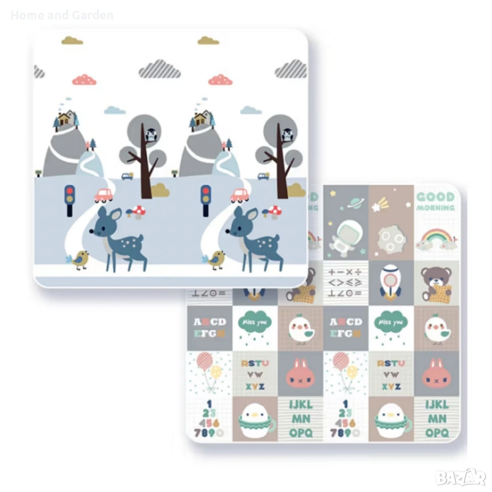 Двулицев образователен детски килим Азбука, цифри и животни 180 х 200 см - водоустойчив, сгъваем