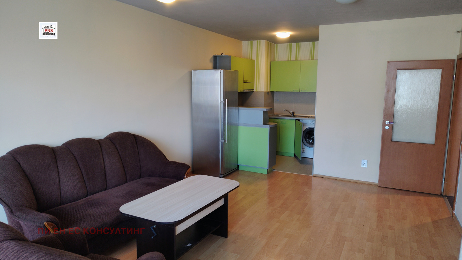 PNS Consulting отдава под наем голям 2-стаен апартамент в кв.Геор Милев, на ул.Проф. Георги Павлов. Апартаментът е разположен на 3-ти етаж, в нова сграда, въведена в експлоатация през 2009год. от реномиран строител. Жилището представлява: преддверие, водещо към просторна всекидневна, с напълно оборудван кухненски бокс и трапезна част, голяма спалня, баня с тоалетна и тераса, с достъп към нея от всяко помещение. Отоплението и топлата вода в жилището са решени с висок клас климатици и бойлер. Апартаментът е непреходен, вътрешен и топъл, с определено ниски режийни разходи. Изложение - югозапад. Отдава се напълно оборудван, което го прави напълно функционален за домакинство. Добро изпълнение на общите части в сградата, хидравличен асансьор, контролиран достъп до сградата.