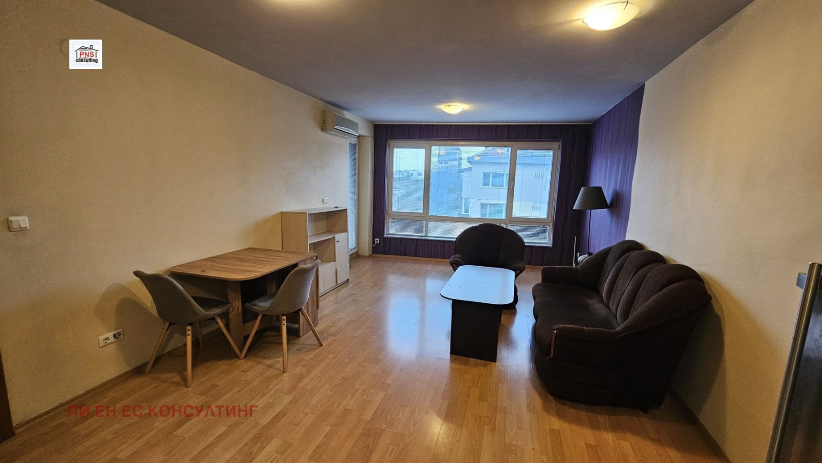 PNS Consulting отдава под наем голям 2-стаен апартамент в кв.Гео Милев, на ул.Проф. Георги Павлов. Апартаментът е разположен на 3-ти етаж, в нова сграда, въведена в експлоатация през 2009год. от реномиран строител. Жилището представлява: преддверие, водещо към просторна всекидневна, с напълно оборудван кухненски бокс и трапезна част, голяма спалня, баня с тоалетна и тераса, с достъп към нея от всяко помещение. Отоплението и топлата вода в жилището са решени с висок клас климатици и бойлер. Апартаментът е непреходен, вътрешен и топъл, с определено ниски режийни разходи. Изложение - югозапад. Отдава се напълно оборудван, което го прави напълно функционален за домакинство. Добро изпълнение на общите части в сградата, хидравличен асансьор, контролиран достъп до сградата.