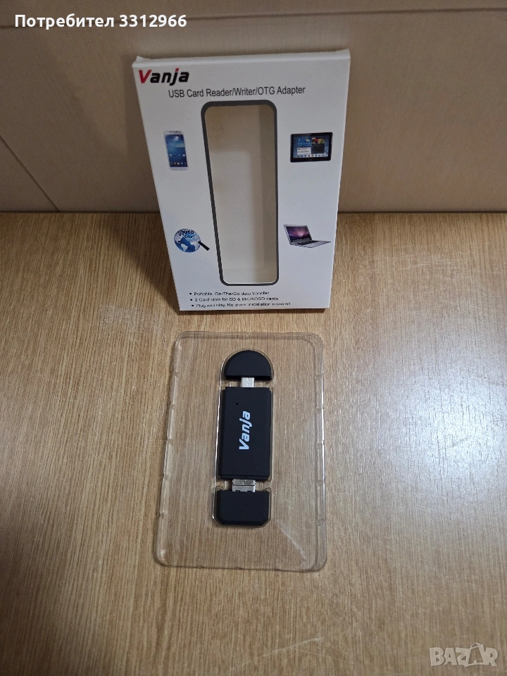 Vanja USB Card Reader/Writer/OTG Adapter, който позволява пренос на данни между устройства.Функциона Vanja USB Card Reader/Writer/OTG Adapter, който позволява пренос на данни между устройства. Функционалност: Разполага с 2 слота за SD и MicroSD карти. Свързаност: Поддържа OTG (On-The-Go) трансфер на данни и е тип "plug and play" (не изисква драйвери). Дизайн: Преносим дизайн, подходящ за използване със смартфони, таблети и лаптопи.