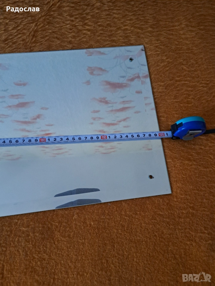 Здравейте, предлагам голямо стенно огледало с четири отвора в краищата, само сега за 18€. Честито на новия собственик.