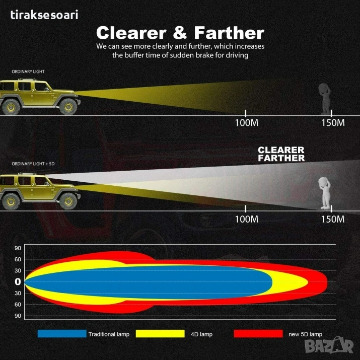 Професионален 9D Tri-Row LED bar с дължина 56 см и мощност 390W, създаден за максимална видимост при всякакви условия. Комбинира насочена и разпръсната светлина за перфектно осветяване както в далечина, така и в близък периметър.