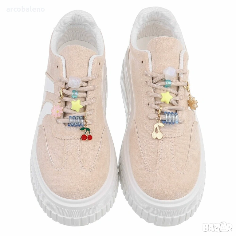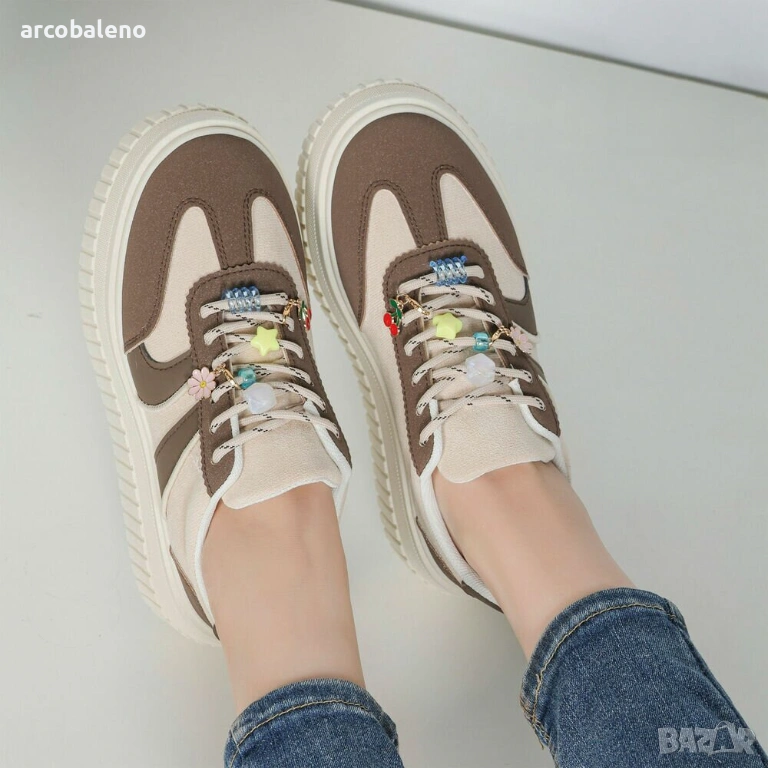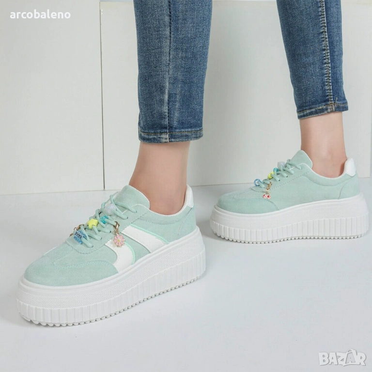 Изживейте върховен стил с нашите модерни маратонки на платформа, които впечатляват не само с външния си вид, но и с комфорта си. Изработени от висококачествени материали, тези обувки предлагат перфектна комбинация от издръжлив велур и еластични текстилни елементи, които обгръщат крака, като същевременно осигуряват стабилност. Атрактивните детайли по връзките придават на обувките игрив щрих, което ги прави идеални както за ежедневно носене, така и за специални поводи. Перфектни за пролетта и лятото, тези обувки се съчетават прекрасно с ежедневни тоалети или спортни визии. Независимо дали се разхождате из града, срещате се с приятели или се разхождате релаксиращо в парка, тези обувки са задължителни за вашия гардероб. Модерната подметка на платформа не само създава модерен силует, но и осигурява допълнителен комфорт, позволявайки ви да носите тези обувки през целия ден, без да жертвате комфорта. Идеални за жени, които следят модата и ценят както стила, така и функционалността. Поглезете се с тези задължителни артикули и направете модно изявление във всяка ситуация!
