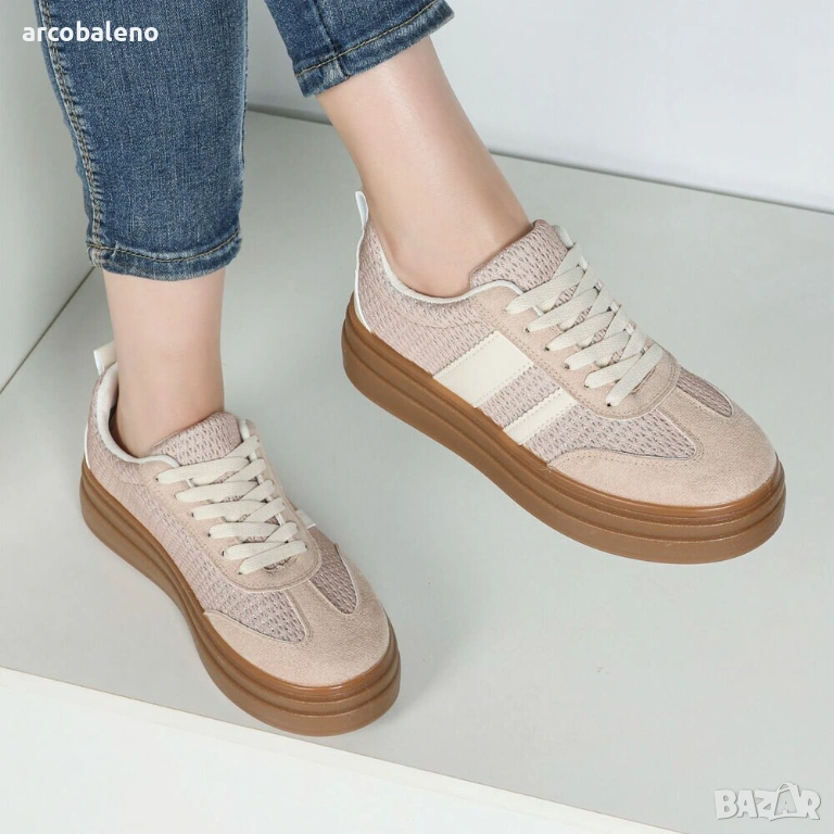 Открийте перфектния спътник за всеки повод: тази стилна обувка, която впечатлява с успешната си комбинация от модерен дизайн и изключителен комфорт. Дишащата горна част осигурява приятна вентилация, а използването на висококачествен текстил и синтетична кожа гарантира издръжливостта на обувката. Тя е идеална за жени, които ценят стила и комфорта както в ежедневието, така и в свободното време. Сдържаният, естествен дизайн позволява обувката да се съчетава с разнообразни тоалети, независимо дали е за разходка из града, посещение на кафене или тренировка. Здравата подметка осигурява не само стабилност, но и пружиниращо усещане, което омекотява всяка стъпка. Насладете се на комфорт през всеки сезон и се уверете, че тази обувка ще се превърне в основен елемент от гардероба ви. Изберете хармонична визия и семпъл стил, който допълва вашия индивидуален стил.