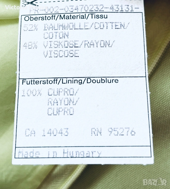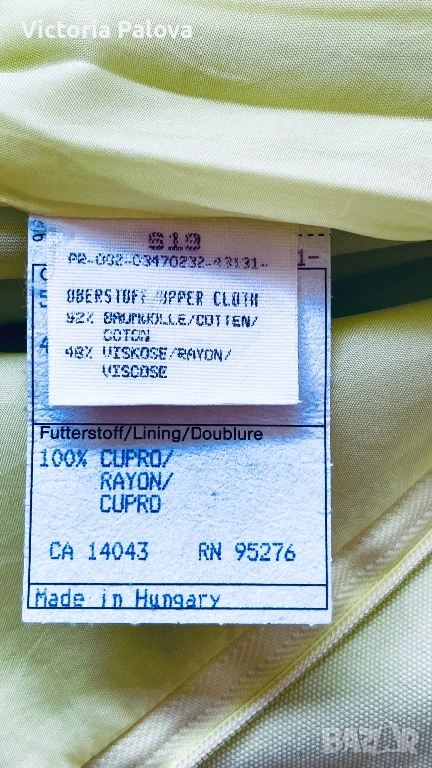 Тази изключителна рокля на престижната италианска модна къща Cerruti 1881 е въплъщение на вечната елегантност и изтънчения вкус. Моделът е в модерен и свеж цвят лайм, който придава енергия на визията и я прави идеална за официални събития, коктейли или изискан бизнес дрескод. Роклята е със силует тип „молив“ без ръкави, който подчертава фигурата по фин и премерен начин благодарение на прецизните вертикални релефни шевове. Класическото обло деколте и дискретните предни джобове придават на дрехата модерен и функционален завършек, характерен за луксозните колекции на бранда. Изработена от висококачествени материали с внимание към всеки детайл, тази рокля е съвършеният избор за дамата, която търси качество и дискретен лукс в гардероба си. Моделът се закопчава със скрит цип на гърба (48см). Комбинация от 52% памук и 48% вискоза - това съчетание прави плата лек, дишащ и с фин бляськ. Подплата: 100% Купро (Cupro) - луксозна изкуствена