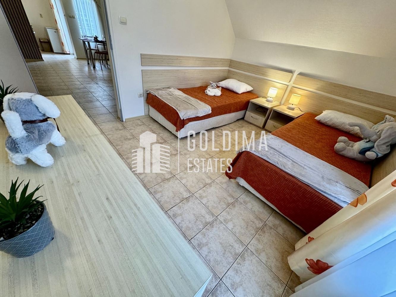 ГОЛДИМА Естейтс продава тристаен апартамент с площ от 88 кв.м. в жилищен комплекс в гр.Свети Влас, намиращ се на 250 метра от морския бряг.