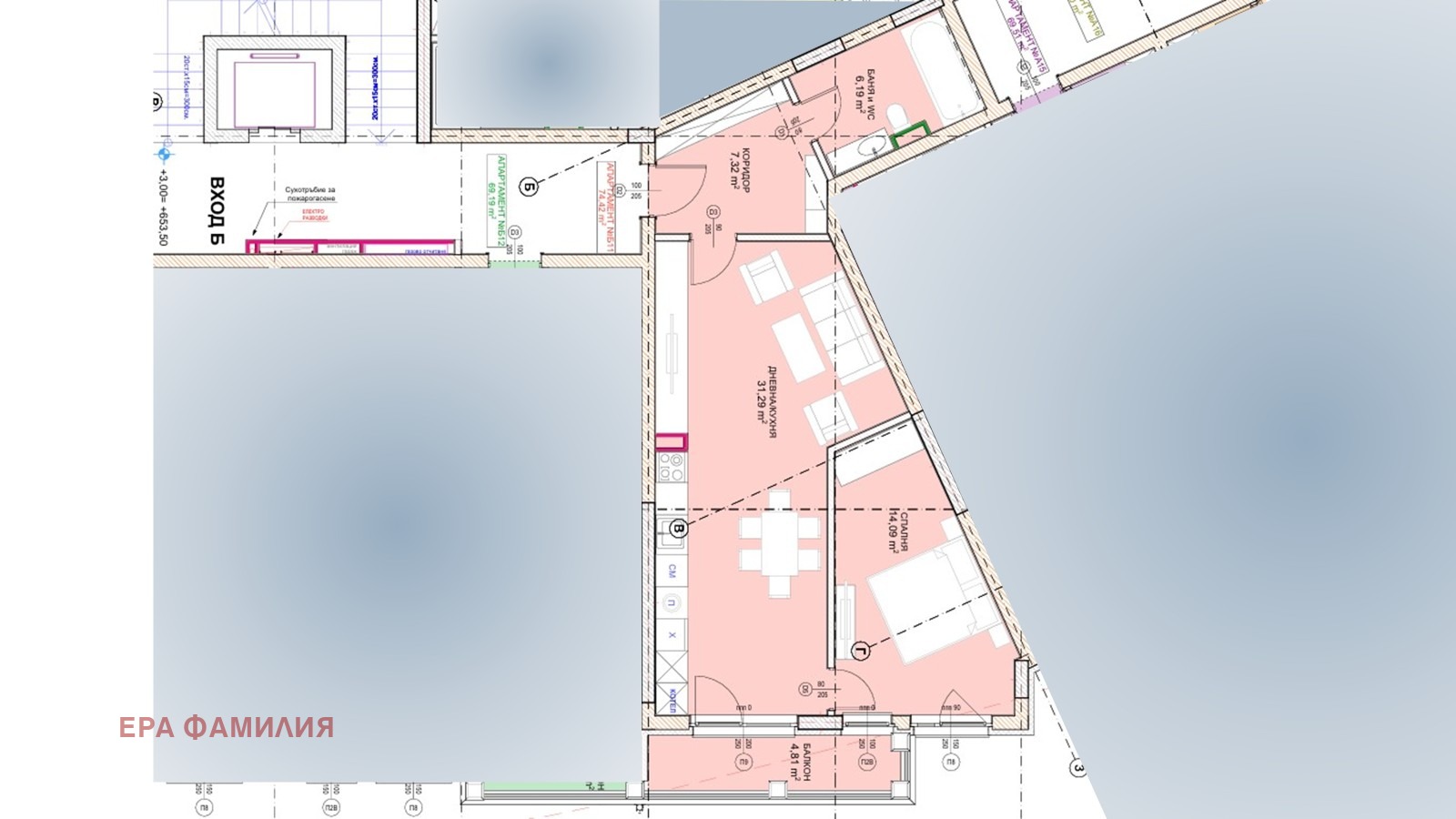 ЕRA Фамилия продава чудесен двустаен апартамент (Б11) в новостроящ се жилищен комплекс със самостоятелно парково междублоково пространство. Комплексът е разположен с бърз излаз към Околовръстното шосе, в близост до големи търговски вериги. Апартаментът се намира на втори етаж в четириетажна сграда с модерна архитектура, голям асансьор, топла връзка с подземни гаражи и паркоместа и обособени пространства за велосипеди. В сградата са предвидени също общи помещения за охрана и офисни площи.