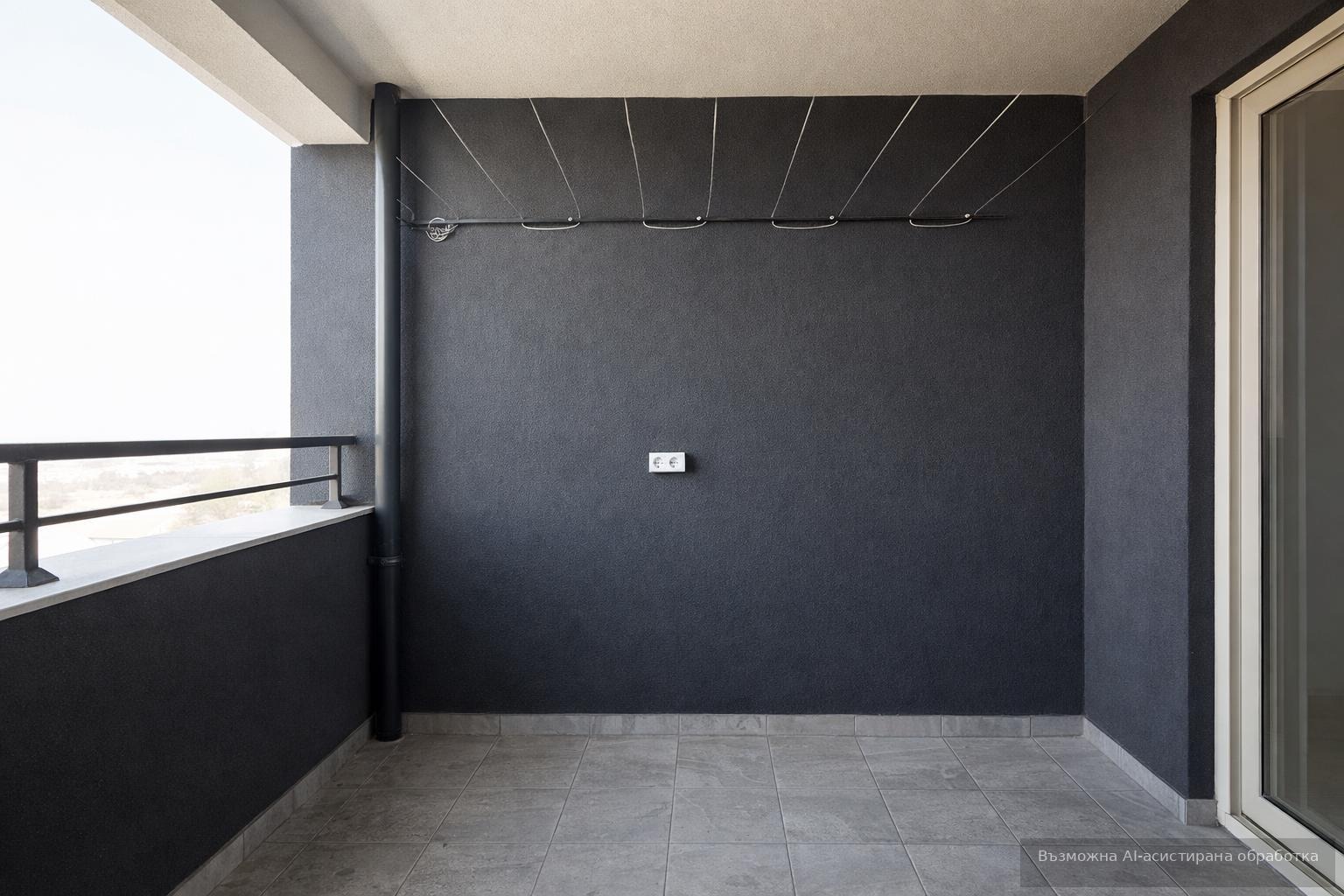 Апартаментът разполага с площ 72 кв.м, разгърната в следното разпределение: коридор, хол с бокс кухня, спалня, баня с тоалетна и тераса.