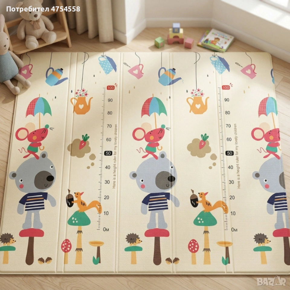 Технически характеристики на Двулицев образователен детски килим 180 х 200 см - водоустойчив, сгъваем, високакачествена и безопасна мека пяна