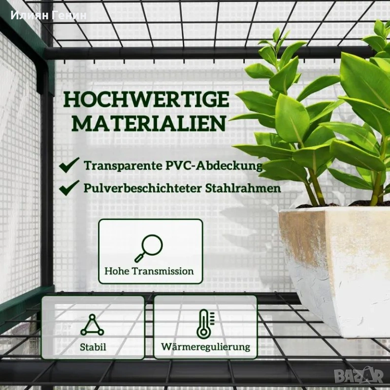 Удължете сезона на засаждане: Нашата оранжерия улеснява защитата на вашите растения от температурни колебания. Подходяща за отглеждане на тропически растения, зеленчуци, плодове, билки, цветя и други.