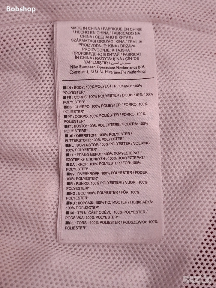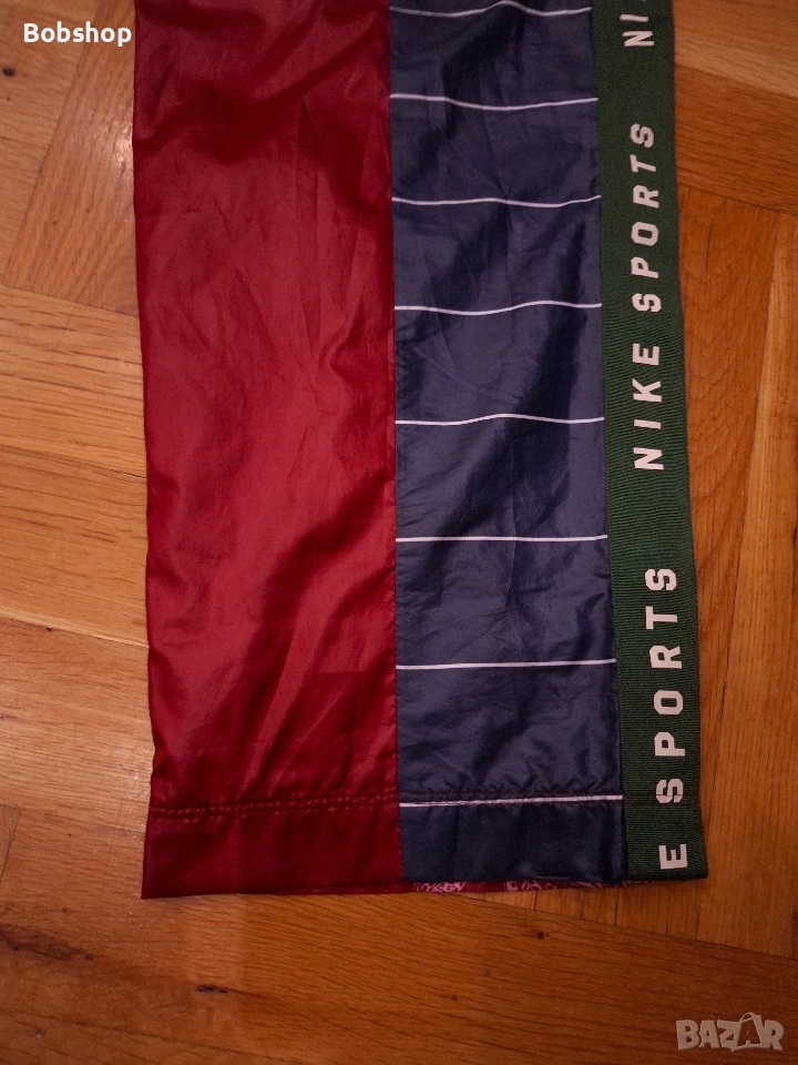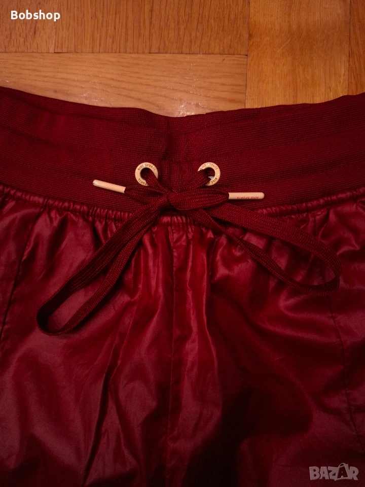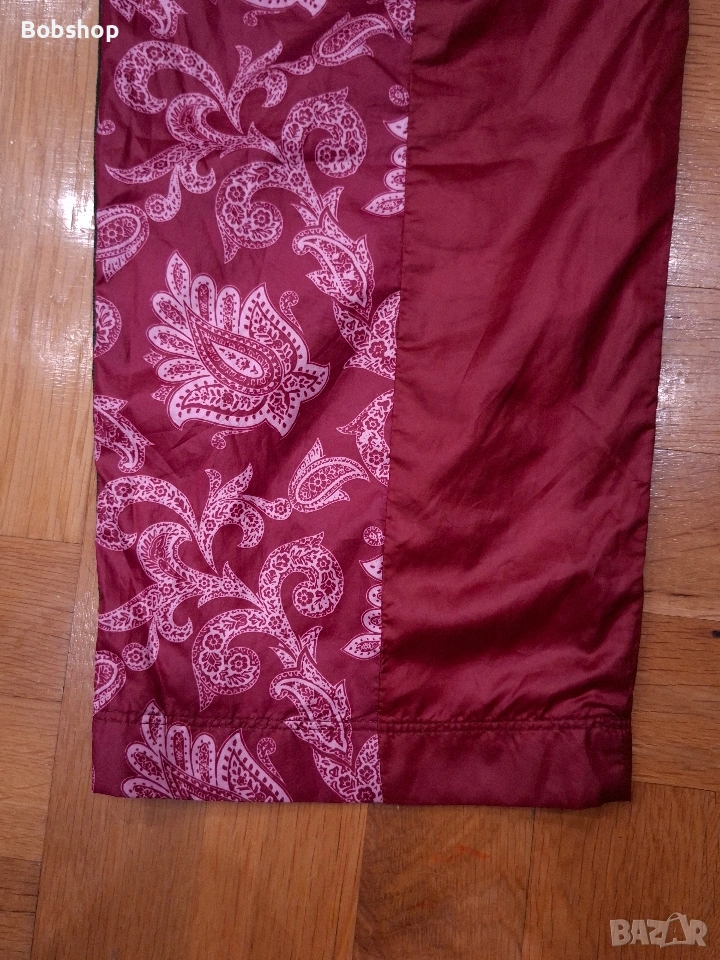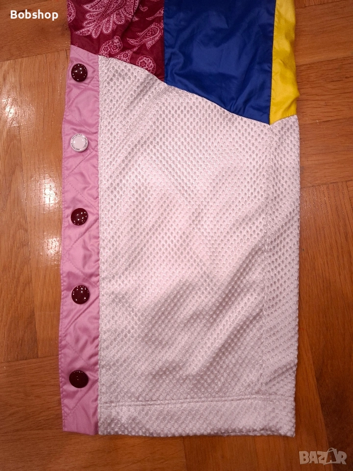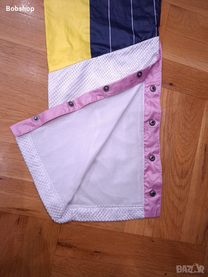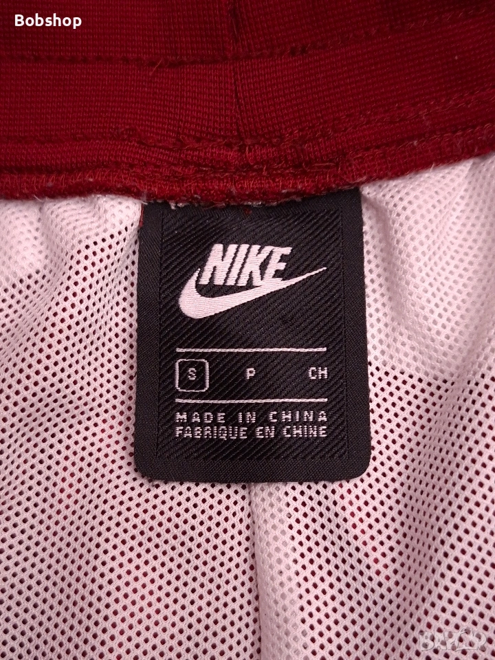 Отлично състояние, оригинален продукт, размер по етикет - S, материя - външна част 100% полиестер, подплата 100% полиестер, два основни джоба, щампирано лого на лицевата част и машиннобродирано лого отзад, ластик и връзки на кръста, тик-так копчета на десния крак, произведено в Китай.