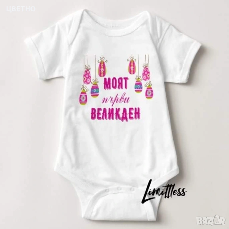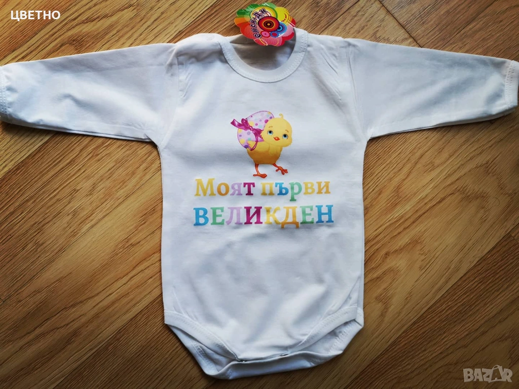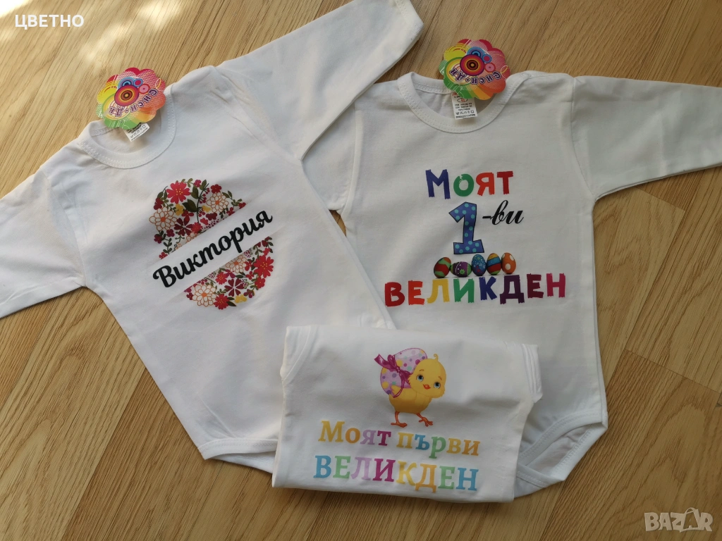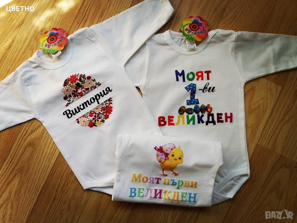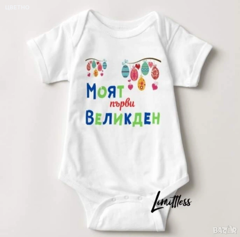 Продавам сладки и стилни бебешки бодита за първи Великден – идеални за снимки, подарък или празничен ден с семейството 🐰💛