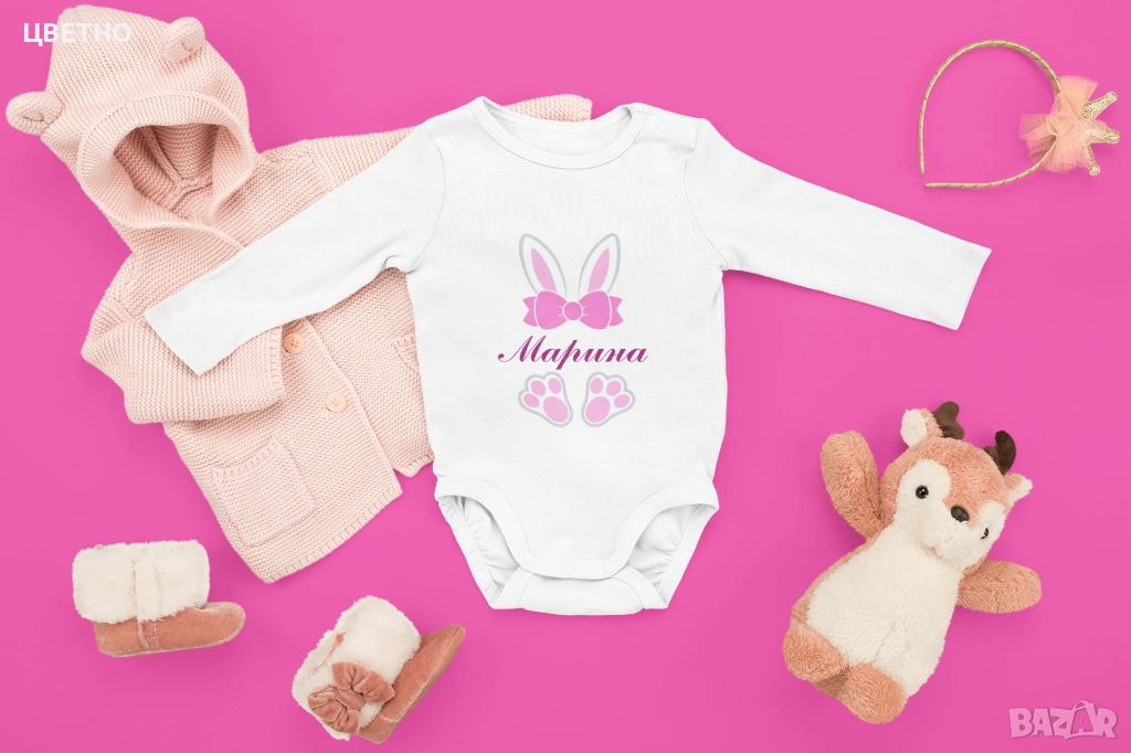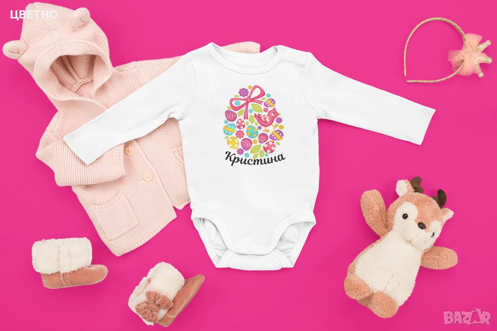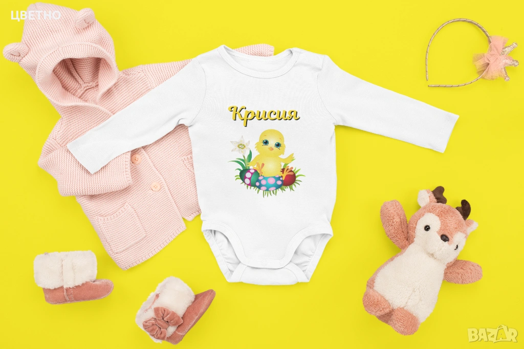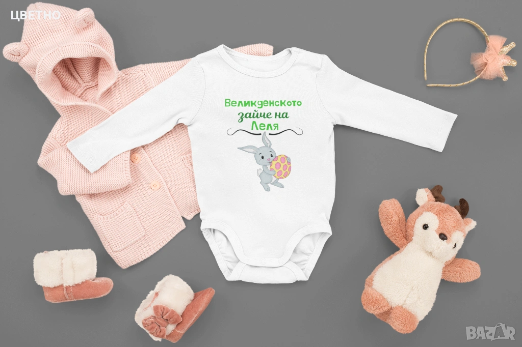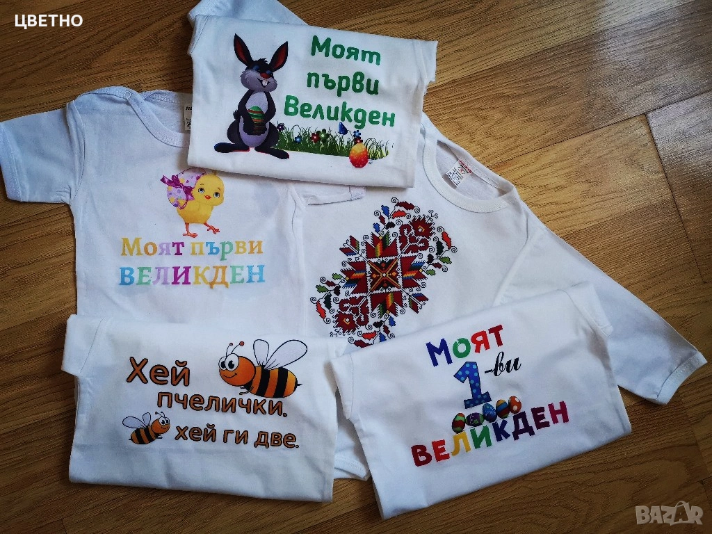 Продавам сладки и стилни бебешки бодита за първи Великден – идеални за снимки, подарък или празничен ден с семейството 🐰💛