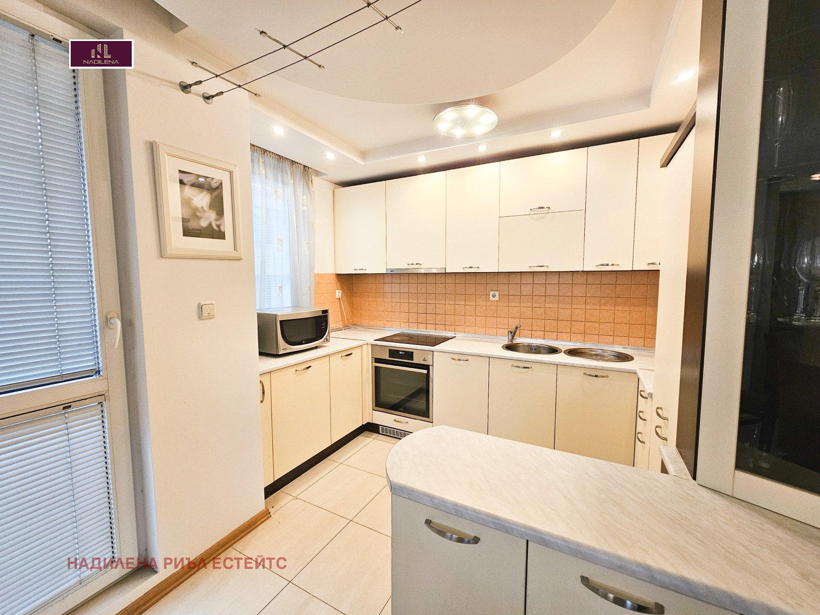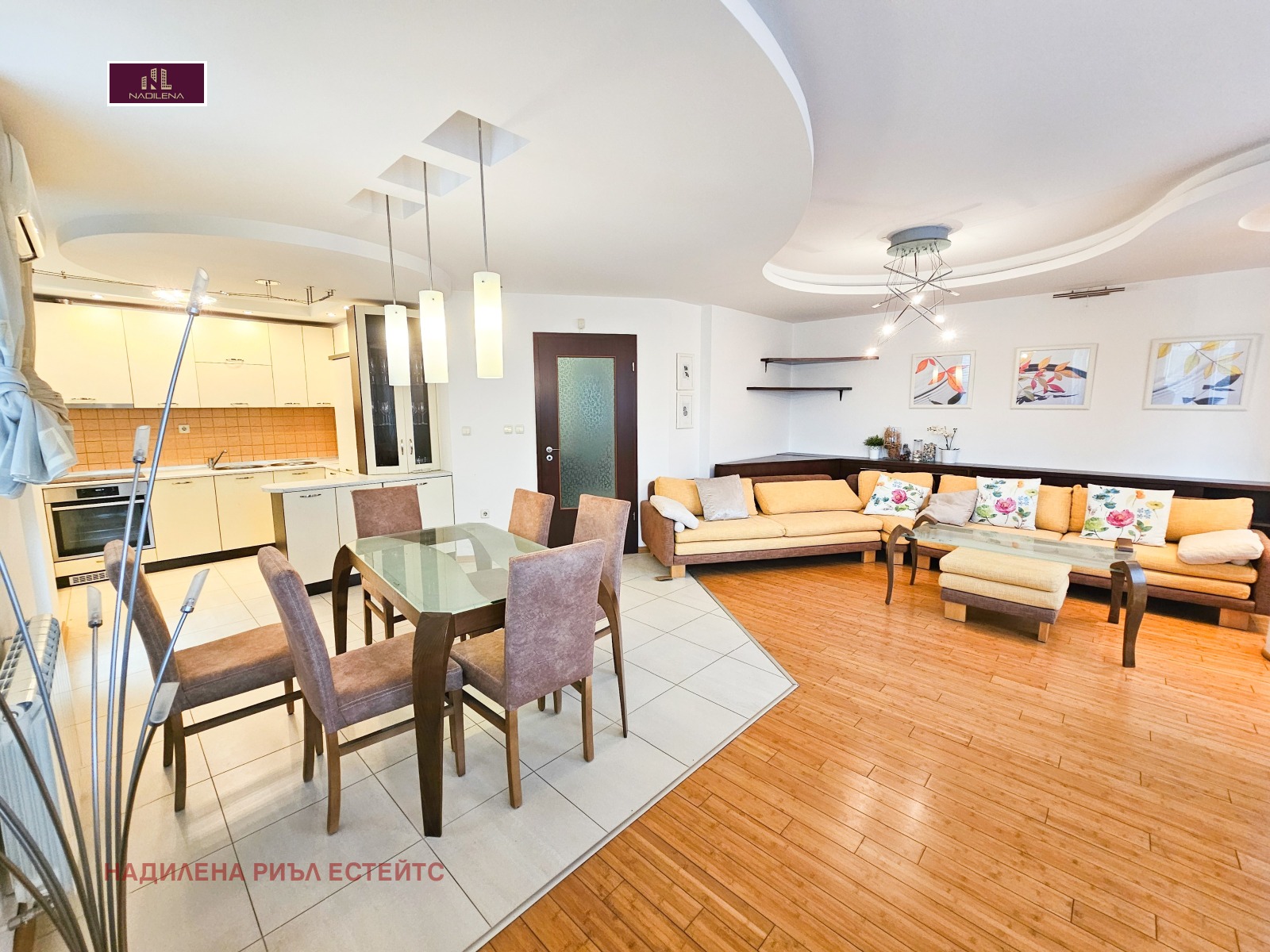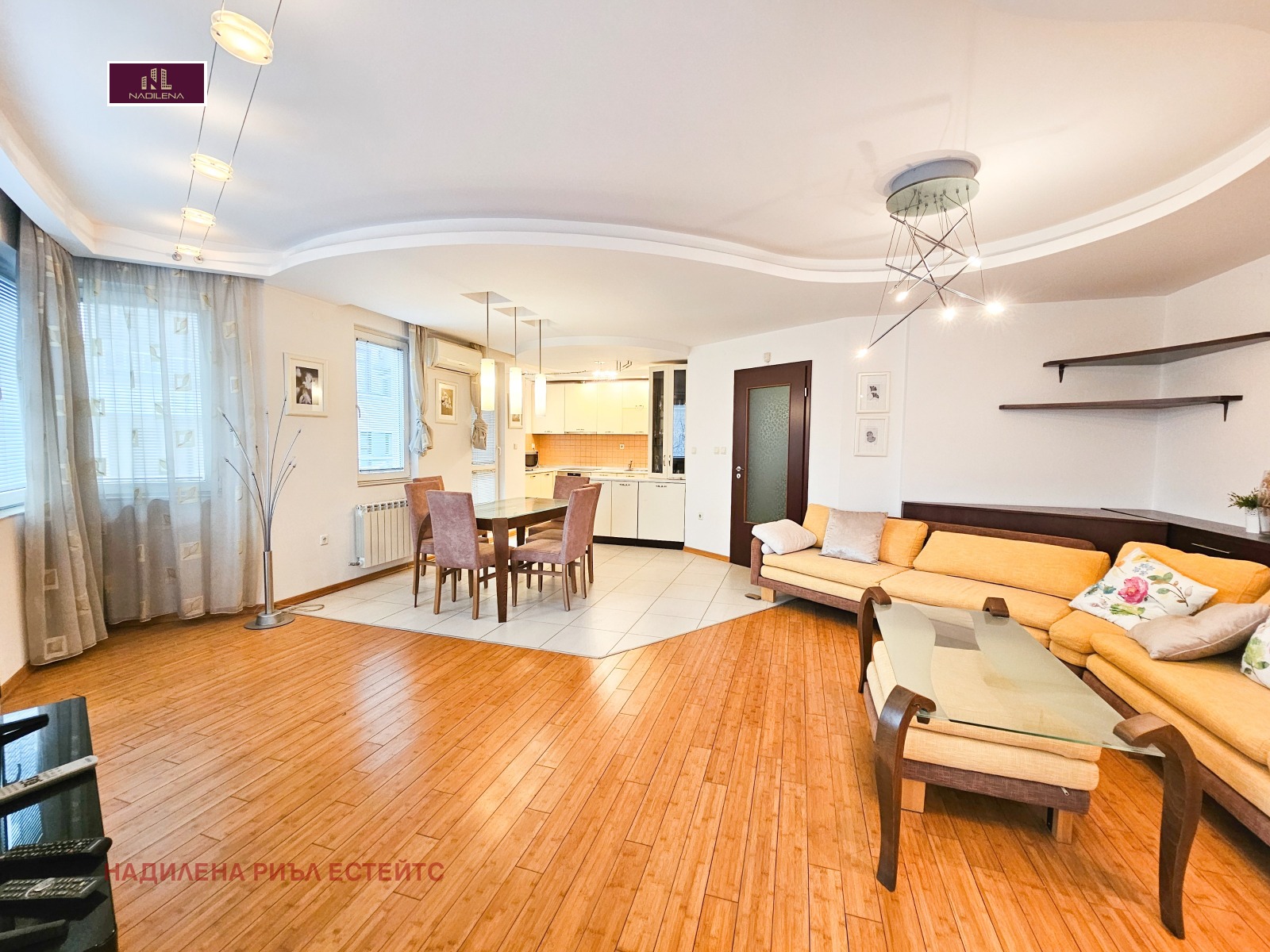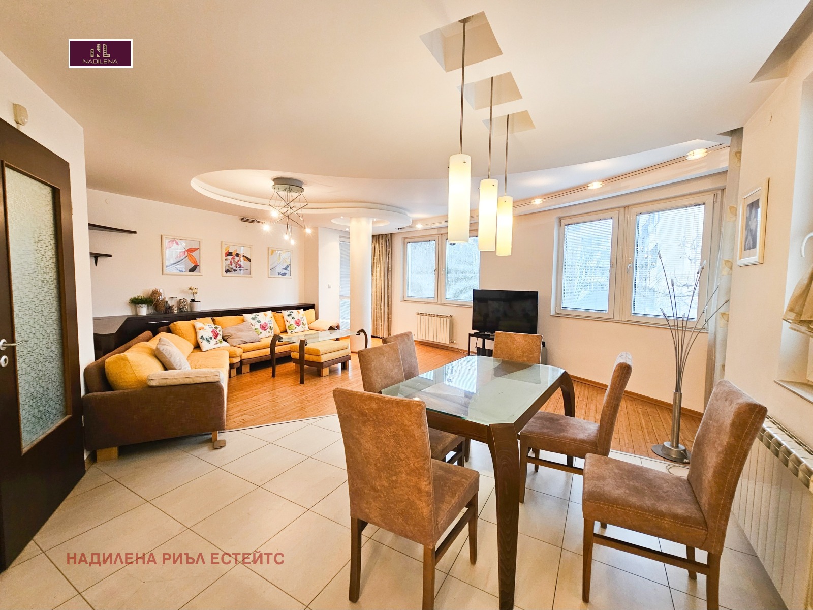 Надилена риъл естейтс отдава под наем стилно обзаведен 3-стаен апартамент с площ от 125 кв.м, ет.3/от 5, отопление-ТЕЦ, с асансьор, СОТ.