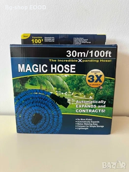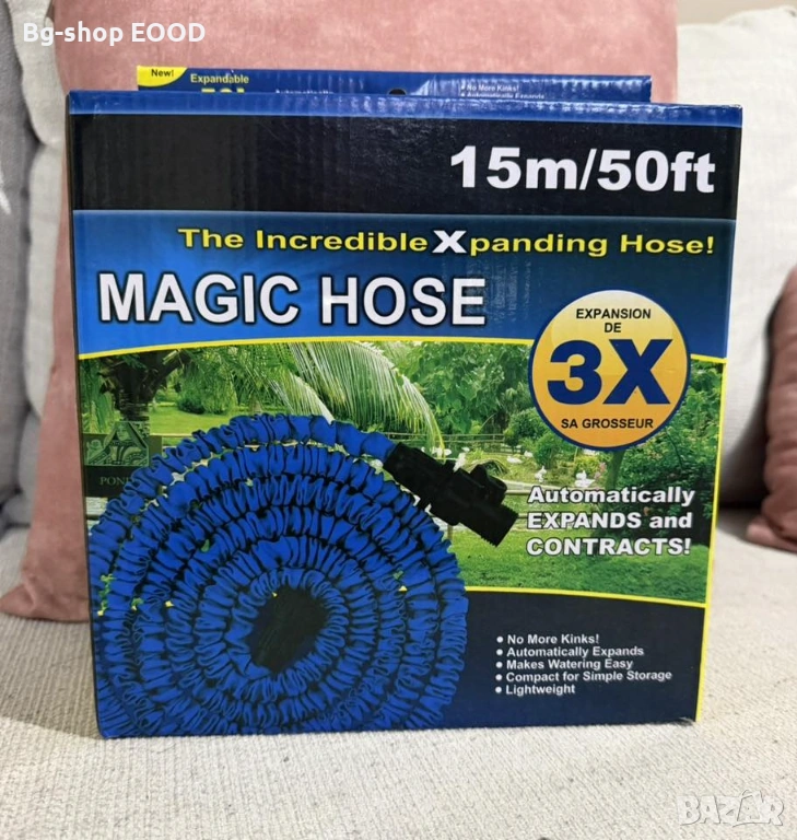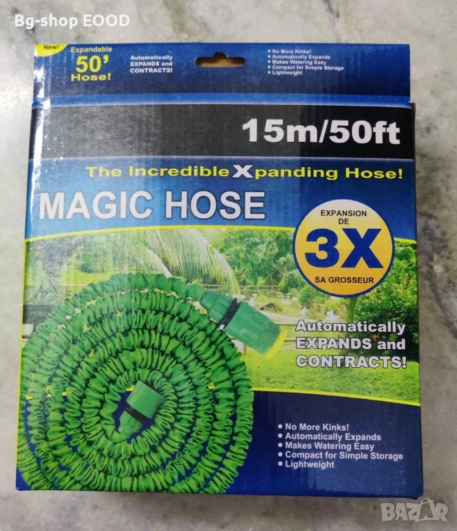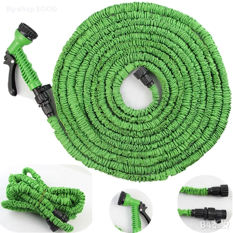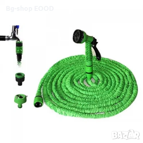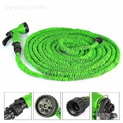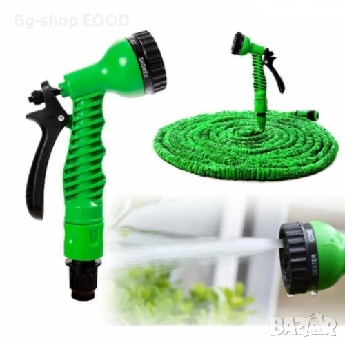 Маркучът е универсален и с него можете да поливане на градина, тераси, както и да измиете колата или домашният любимец.